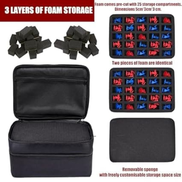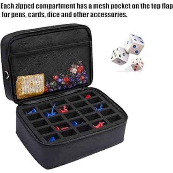 Compatibility: portable miniature storage bag for 40k figures, dungeons & dragons figures, kill team, an army and other miniatures and more! 3-tier sponge tray – Yousny portable miniature storage kit has 2 rows of pre-cut 25 slots sponge trays for a total of 50 standard 25-28 mm miniatures. (Please note: pre-cut slots measure 5 cm x 3 cm x 3 cm). . 1 layer of custom foam with its own storage space for larger miniatures. SEFULNESS - Each compartment of the portable organiser bag has a built-in mesh pocket to store other small accessories such as dice, cards, pens or other small accessories for the game. Features - The crossbody bag is made of high-quality 1680D material and has a comfortable, adjustable shoulder strap that makes carrying easier. PLEASE NOTE: Only the organizer bag is sold, no miniature figures in the package. › See more product details; Product description Please note that the product does not contain toys and only storage bags are sold! Contents: two sponges can hold 50-standard 25-28 mm miniature models, and a DIY pre-cut sponge can be designed for large miniature models. A single shoulder strap, can be carried in hand or shoulder strap.; Product description Please note that the product does not contain toys and only storage bags are sold! Contents: two sponges can hold 50-standard 25-28 mm miniature models, and a DIY pre-cut sponge can be designed for large miniature models. A single shoulder strap, can be carried in hand or shoulder strap.; Please note that the product does not contain toys and only storage bags are sold! Contents: two sponges can hold 50-standard 25-28 mm miniature models, and a DIY pre-cut sponge can be designed for large miniature models. A single shoulder strap, can be carried in hand or shoulder strap.