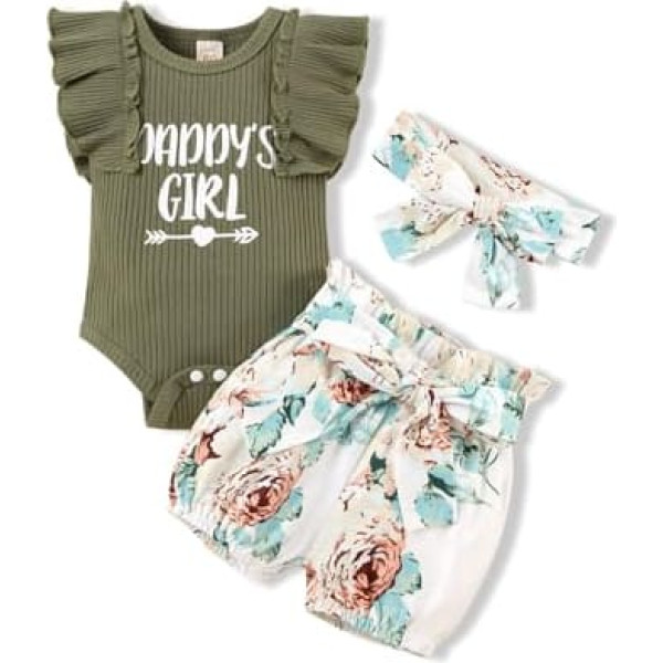 Baby-Kleidungsset für Neugeborene, Sommer, kurzärmelig, Blumenmuster, 3 Stück