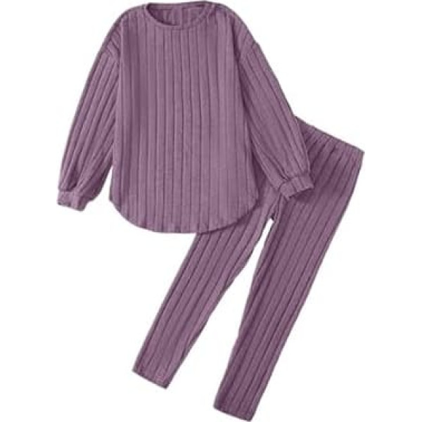 DEFAHN Kleinkind-Mädchen-Herbstkleidungs-Set, warm, weich, 2-teiliges Outfit, geripptes Strick-Langarmshirt und Leggings, Winter, überschnittene Schulter, Mädchenkleidung