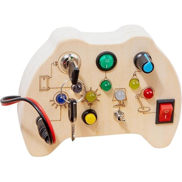 Durable material: Montessori activity board accessories made of smooth wood material, smooth surface and safe, you can be sure that your baby will let it play. Toddler preschool sensory learning toys: By learning colours and lights, fine motor skills, hand-eye coordination, shape recognition, fine motor skills and colour recognition are promoted. Perfect size for toddlers, bring a lot of fun for your baby. Educational toy for children: your children will be entertained for hours with button and light combinations. A good choice for little ones as Easter, birthday, Christmas, New Year gift and more. Montessori Early Development Toys LED Switch Lights: Mini wooden toy with remote control, various switches to control lights in different colours, educational toy for children. Perfect travel toy: Small, lightweight, easy to carry, great activity for toddlers aged 2+. Wooden toy with colourful lights to promote early learning skills development. › See more product details; Product description Description: - LED Busy: Mini Busy, Remote Control Design, Different Switches to Control Lights in Different Colors, Educational Toys for Kids - Educational toy for kids: your children will be entertained for hours with buttons and light combinations. - Material: Montessori employment made of smooth wood material, smooth and . - Educational toy: learning colours and lights. Perfect size for toddlers. - Perfect travel toy: Small, lightweight, great activity for toddlers aged 2 and up. Specification: - Material: wood. - Size: 14 cm x 10 cm x 5.5 cm / 5.51 inches x 3.94 inches x 2.17 inches. Package includes: - 1 Montessori Busy Board Note: Please allow slight dimension difference due to different manual measurement.; Product description Description: - LED Busy: Mini Busy, Remote Control Design, Different Switches to Control Lights in Different Colors, Educational Toys for Kids - Educational toy for kids: your children will be entertained for hours with buttons and light combinations. - Material: Montessori employment made of smooth wood material, smooth and . - Educational toy: learning colours and lights. Perfect size for toddlers. - Perfect travel toy: Small, lightweight, great activity for toddlers aged 2 and up. Specification: - Material: wood. - Size: 14 cm x 10 cm x 5.5 cm / 5.51 inches x 3.94 inches x 2.17 inches. Package includes: - 1 Montessori Busy Board Note: Please allow slight dimension difference due to different manual measurement.; Description: - LED Busy: Mini Busy, Remote Control Design, Different Switches to Control Lights in Different Colors, Educational Toys for Kids - Educational toy for kids: your children will be entertained for hours with buttons and light combinations. - Material: Montessori employment made of smooth wood material, smooth and . - Educational toy: learning colours and lights. Perfect size for toddlers. - Perfect travel toy: Small, lightweight, great activity for toddlers aged 2 and up. Specification: - Material: wood. - Size: 14 cm x 10 cm x 5.5 cm / 5.51 inches x 3.94 inches x 2.17 inches. Package includes: - 1 Montessori Busy Board Note: Please allow slight dimension difference due to different manual measurement.