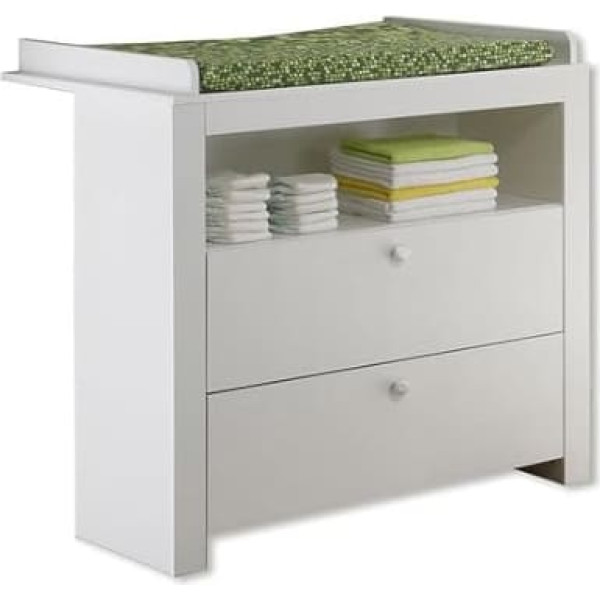 Modern, easy-care changing table made of wood material in white Dimensions (when assembled): 96 x 102 x 77 cm (W x H x D). Includes furniture, assembly instructions and assembly material. Delivered disassembled and without decoration. Individual furniture and set combination available › See more product details