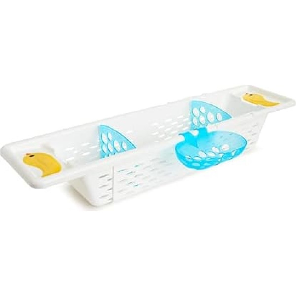 Toys and bath utensils are tidy and within easy reach Xtra Grip material ensures that the tray rests securely on the rim Includes 2 customizable dividers and 1 soap dish with washcloth hook Draining holes allow quick drying and prevent mould from forming on items Can be placed on the edge of the bath so that the tap does not pose a danger to your baby › See more product details; Product description Product Description Do you feel that your bath has been taken by your baby's bath toys? With the Quack bath caddy, you always have bath essentials within reach and put an end to the clutter. This practical shelf extends across the tub and is particularly stable thanks to the Xtra Grip material. In the tray, toys can be stored at the height of the child, so that they can take out what they want, and at the end of the bath can even help clean up. Movable dividers allow you to adjust the compartments according to your needs for toys and shampoo. And as (large!) Bonus you can position the tray between your little one and the faucet to avoid bumps or burns. When the bath fun is over, simply slide the tray to the end of the tub so that it doesn't get in the way when showering. Multiple holes allow everything to dry quickly and prevent mould formation. Safety and order: just what you need for a smooth bath. Directions Use the Xtra Grip handles to secure caddy to tub rail, customize bathroom organization with the dividers and soap dish. Box Contains 1 x Rutschsichere Badewannenablage See more; Product description Product Description Do you feel that your bath has been taken by your baby's bath toys? With the Quack bath caddy, you always have bath essentials within reach and put an end to the clutter. This practical shelf extends across the tub and is particularly stable thanks to the Xtra Grip material. In the tray, toys can be stored at the height of the child, so that they can take out what they want, and at the end of the bath can even help clean up. Movable dividers allow you to adjust the compartments according to your needs for toys and shampoo. And as (large!) Bonus you can position the tray between your little one and the faucet to avoid bumps or burns. When the bath fun is over, simply slide the tray to the end of the tub so that it doesn't get in the way when showering. Multiple holes allow everything to dry quickly and prevent mould formation. Safety and order: just what you need for a smooth bath. Directions Use the Xtra Grip handles to secure caddy to tub rail, customize bathroom organization with the dividers and soap dish. Box Contains 1 x Rutschsichere Badewannenablage See more; Product Description Do you feel that your bath has been taken by your baby's bath toys? With the Quack bath caddy, you always have bath essentials within reach and put an end to the clutter. This practical shelf extends across the tub and is particularly stable thanks to the Xtra Grip material. In the tray, toys can be stored at the height of the child, so that they can take out what they want, and at the end of the bath can even help clean up. Movable dividers allow you to adjust the compartments according to your needs for toys and shampoo. And as (large!) Bonus you can position the tray between your little one and the faucet to avoid bumps or burns. When the bath fun is over, simply slide the tray to the end of the tub so that it doesn't get in the way when showering. Multiple holes allow everything to dry quickly and prevent mould formation. Safety and order: just what you need for a smooth bath. Directions Use the Xtra Grip handles to secure caddy to tub rail, customize bathroom organization with the dividers and soap dish. Box Contains 1 x Rutschsichere Badewannenablage See more