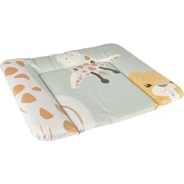 Changing mat - The Sterntaler changing mat in pale green safari design with the giraffe and lion motif offers comfort and a stylish look for any baby's room. Easy care and washable - The changing mat is made of easy-care polyvinyl chloride and can be easily wiped clean, ideal for everyday use. Maximum comfort – Thanks to the soft polyester filling, the changing mat is padded and ensures pleasant lying comfort during changing. Easy to clean - The changing mat is not suitable for machine washing but can be easily wiped clean with a damp cloth and easy to clean. Safety and design: the changing mat is in a cute safari design that stimulates baby's imagination with giraffe Kaya and Lion Leo while ensuring pleasant lying comfort during changing time. › See more product details; Product description Giraffe and Lion changing mat. Easy-care and wipe-clean material; Product description Giraffe and Lion changing mat. Easy-care and wipe-clean material; Giraffe and Lion changing mat. Easy-care and wipe-clean material