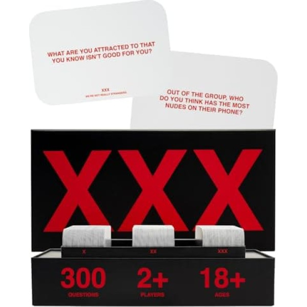 WE'RE NOT REALLY STRANGERS Adult's Edition includes 300 conversation cards and wildcards with three carefully crafted levels of questions and wildcards for adults who love playing card games with their friends. Level 1 - The fun starts with level 1. Some questions are for you to answer and some are for the group to answer. There is only one rule: be honest. Level 2 - In Level 2, the questions become even more exciting. When it's your turn, read your card and answer truthfully. Be open to expressing yourself in a way you've never done before. Remember, honesty is the best policy. LEVEL 3 - The climax Turn up the heat even more in the last question session with unforgettable answers. Finish the game by playing the last card with the group. Package includes 300 conversation cards and wildcards, 1 consent form notepad, 1 final card and 2 clear \; Product description Find out the answers to everything you've never dared by playing WE'RE NOT REALLY STRANGERS Adult Edition, a sex party game, with your friends. Before you begin, all players must sign an approval form and agree to create a safe place for all players. A safe word is also chosen so that you can pass on any question that you do not feel comfortable answering. After all players have signed, the fun begins in Level 1, where some questions about themselves answer and some are for the group to answer about you. In Level 2, the questions become even more exciting. When it's your turn, read your card and answer honestly. Level 3 is the climax where you get to know your friends in a way you'll never forget. For 2-6 players, ages 18+. Warning: explicit content.; Product description Find out the answers to everything you've never dared by playing WE'RE NOT REALLY STRANGERS Adult Edition, a sex party game, with your friends. Before you begin, all players must sign an approval form and agree to create a safe place for all players. A safe word is also chosen so that you can pass on any question that you do not feel comfortable answering. After all players have signed, the fun begins in Level 1, where some questions about themselves answer and some are for the group to answer about you. In Level 2, the questions become even more exciting. When it's your turn, read your card and answer honestly. Level 3 is the climax where you get to know your friends in a way you'll never forget. For 2-6 players, ages 18+. Warning: explicit content.; Find out the answers to everything you've never dared by playing WE'RE NOT REALLY STRANGERS Adult Edition, a sex party game, with your friends. Before you begin, all players must sign an approval form and agree to create a safe place for all players. A safe word is also chosen so that you can pass on any question that you do not feel comfortable answering. After all players have signed, the fun begins in Level 1, where some questions about themselves answer and some are for the group to answer about you. In Level 2, the questions become even more exciting. When it's your turn, read your card and answer honestly. Level 3 is the climax where you get to know your friends in a way you'll never forget. For 2-6 players, ages 18+. Warning: explicit content.