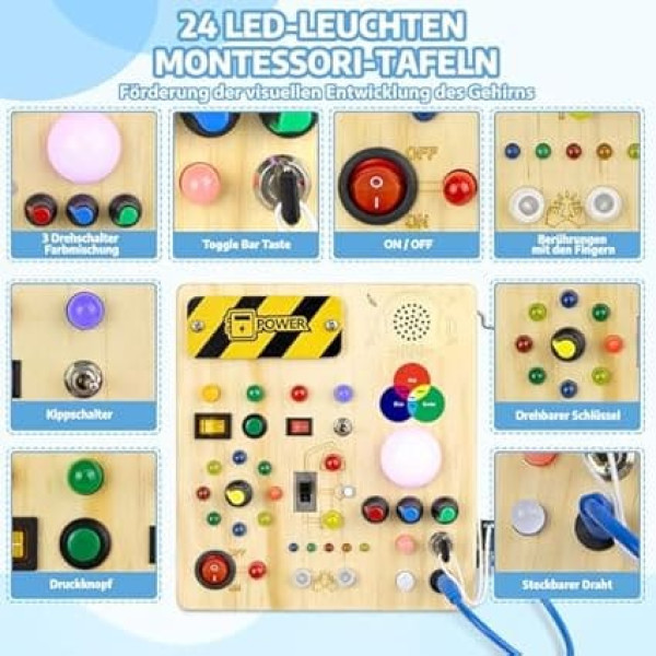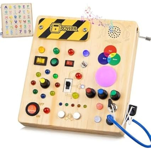 Toy from 1 Year Montessori Toy from 1 2 3 Years Busy Board Activity Board Children's Toy 13 Switches 24 LED Lights Wooden Toy Learning Toys Sensory 1 2 3 Years Boys and Girls
