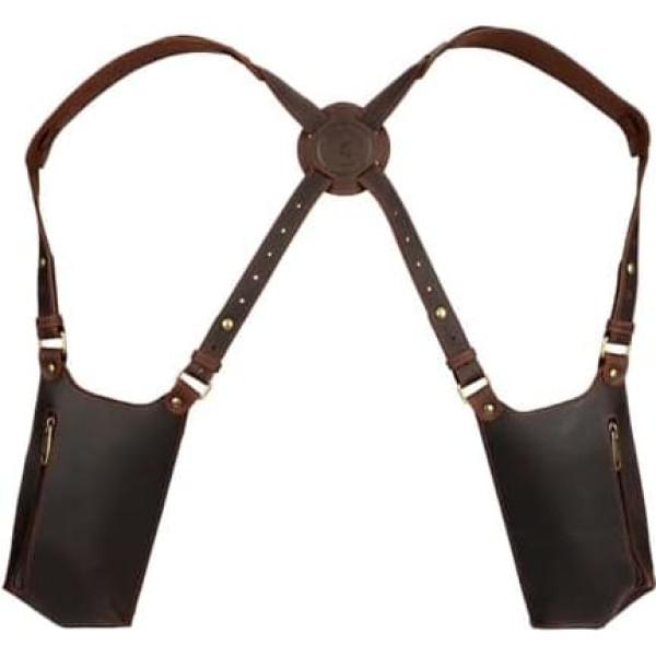 Tourbon anti theft hidden armpit shoulder holster is made of thick genuine leather combined with high quality fasteners for long time use. Designed with double shoulder straps style, the leather braces with Chicago screws to adjust the length. Suitable for both men and women. The underarm shoulder bag features two large zipper pockets for your belongings such as cell phone, pen, passport, wallet, cash, keys, flask, earphone, EDC knife tool, etc.(The accessories are not included) It saves space in your hands and pockets. You can wear over a T-shirt, under or over a jacket or business suit, easy to wear and add a more stylish look to your daily wear. This practical leather shoulder bag is a good choice for business, outdoor sports (cycling, riding, camping, etc.), driving, travelling, dating, and shopping in casual everyday life. › See more product details; Product description 1. Tourbon wide shoulder braces distribute pressure evenly across your shoulders and relieve sore spots. 2. Serves as a cool fashion accessory and useful pocket for mobile phone, business cards, keys, notebook, pen, flashlight, etc. 3. You can wear this shoulder holster on the outside of your t-shirt, wear it under or outside your jacket or business suit. It is a good partner for your work, home or travel. 4. The adjustable buckle shoulder straps allow you to easily adjust it for your ideal length, easy to put on and comfortable to wear. 5. This durable hidden underarm shoulder bag gives you double protection to keep your values away from the pickpockets without worrying about the stress of long-term travel. 6. The vintage bandage has a taste that can be used both casual and business. Also a great gift idea for grandpa, father, husband, boyfriend, lover, boss, etc. Package: 1 piece leather underarm shoulder bag harness strap for men women (phone and accessories are not included); Product description 1. Tourbon wide shoulder braces distribute pressure evenly across your shoulders and relieve sore spots. 2. Serves as a cool fashion accessory and useful pocket for mobile phone, business cards, keys, notebook, pen, flashlight, etc. 3. You can wear this shoulder holster on the outside of your t-shirt, wear it under or outside your jacket or business suit. It is a good partner for your work, home or travel. 4. The adjustable buckle shoulder straps allow you to easily adjust it for your ideal length, easy to put on and comfortable to wear. 5. This durable hidden underarm shoulder bag gives you double protection to keep your values away from the pickpockets without worrying about the stress of long-term travel. 6. The vintage bandage has a taste that can be used both casual and business. Also a great gift idea for grandpa, father, husband, boyfriend, lover, boss, etc. Package: 1 piece leather underarm shoulder bag harness strap for men women (phone and accessories are not included); 1. Tourbon wide shoulder braces distribute pressure evenly across your shoulders and relieve sore spots. 2. Serves as a cool fashion accessory and useful pocket for mobile phone, business cards, keys, notebook, pen, flashlight, etc. 3. You can wear this shoulder holster on the outside of your t-shirt, wear it under or outside your jacket or business suit. It is a good partner for your work, home or travel. 4. The adjustable buckle shoulder straps allow you to easily adjust it for your ideal length, easy to put on and comfortable to wear. 5. This durable hidden underarm shoulder bag gives you double protection to keep your values away from the pickpockets without worrying about the stress of long-term travel. 6. The vintage bandage has a taste that can be used both casual and business. Also a great gift idea for grandpa, father, husband, boyfriend, lover, boss, etc. Package: 1 piece leather underarm shoulder bag harness strap for men women (phone and accessories are not included)