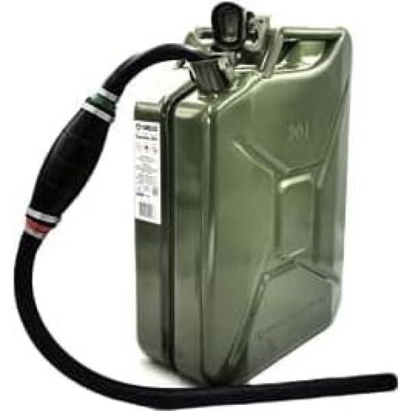 Practical set: the 20 litre metal canister with the high-quality hand pump makes it easier to convert, fill in and fill petrol and oil. The intelligent hand pump is operated once and then sucks independently and quickly and cleanly. GELG petrol can made of metal: the high-quality 20 litre metal canister made of 0.8 sheet steel is ideal for transporting petrol, diesel, bio-ethanol or other liquids and fuels. High-quality hand pump: with our robust and large hand pump, transferring is child's play and is quick and easy. Material: The pump itself is made of high quality and elastic rubber, so it is easy to operate and a long service life guaranteed. DIMENSIONS The total length of the pump is 225 cm, with the suction hose 143 cm and the inlet hose is 63 cm long. The outer diameter of the hose is 23mm, which gives an overall efficiency of 10 litres per minute, making our pump one of the fastest. › See more product details; Product description The canister is intended for the transport and temporary storage of liquids and petroleum products. It is durable, aesthetic, safe and of the highest quality thanks to the punching and double-sided emulsion. The canisters are made from deeply punched sheet steel of 0.8 mm. The material is welded in plasma machines and then powder-coated on both sides with ethylene resistant paint. The interior paint protects against rust and decomposition of the contents during prolonged storage when filled. The canisters are used especially in the automotive industry, horticulture, sailing, healthcare, military and construction industry. The hand pump included in the set for transferring liquids is versatile. For example, petrol and diesel can be filled from and into vehicles, water from aquariums and pools, beer from barrels and other non-corrosive liquids can be transferred from one container to another. The operation is very simple: the hose with the green marking comes into the container to be drained, the red side into the inlet. Now pumping by hand a few times until the hoses fill. The rest then goes by itself and you just need to wait until the liquid is transferred. Thanks to the robust materials used, the pump is extremely resistant and durable. Thanks to the overall dimensions of 225 cm and a hose diameter of 23 mm, it is also one of the larger models of its kind, which allows for quick transfer.; Product description The canister is intended for the transport and temporary storage of liquids and petroleum products. It is durable, aesthetic, safe and of the highest quality thanks to the punching and double-sided emulsion. The canisters are made from deeply punched sheet steel of 0.8 mm. The material is welded in plasma machines and then powder-coated on both sides with ethylene resistant paint. The interior paint protects against rust and decomposition of the contents during prolonged storage when filled. The canisters are used especially in the automotive industry, horticulture, sailing, healthcare, military and construction industry. The hand pump included in the set for transferring liquids is versatile. For example, petrol and diesel can be filled from and into vehicles, water from aquariums and pools, beer from barrels and other non-corrosive liquids can be transferred from one container to another. The operation is very simple: the hose with the green marking comes into the container to be drained, the red side into the inlet. Now pumping by hand a few times until the hoses fill. The rest then goes by itself and you just need to wait until the liquid is transferred. Thanks to the robust materials used, the pump is extremely resistant and durable. Thanks to the overall dimensions of 225 cm and a hose diameter of 23 mm, it is also one of the larger models of its kind, which allows for quick transfer.; The canister is intended for the transport and temporary storage of liquids and petroleum products. It is durable, aesthetic, safe and of the highest quality thanks to the punching and double-sided emulsion. The canisters are made from deeply punched sheet steel of 0.8 mm. The material is welded in plasma machines and then powder-coated on both sides with ethylene resistant paint. The interior paint protects against rust and decomposition of the contents during prolonged storage when filled. The canisters are used especially in the automotive industry, horticulture, sailing, healthcare, military and construction industry. The hand pump included in the set for transferring liquids is versatile. For example, petrol and diesel can be filled from and into vehicles, water from aquariums and pools, beer from barrels and other non-corrosive liquids can be transferred from one container to another. The operation is very simple: the hose with the green marking comes into the container to be drained, the red side into the inlet. Now pumping by hand a few times until the hoses fill. The rest then goes by itself and you just need to wait until the liquid is transferred. Thanks to the robust materials used, the pump is extremely resistant and durable. Thanks to the overall dimensions of 225 cm and a hose diameter of 23 mm, it is also one of the larger models of its kind, which allows for quick transfer.