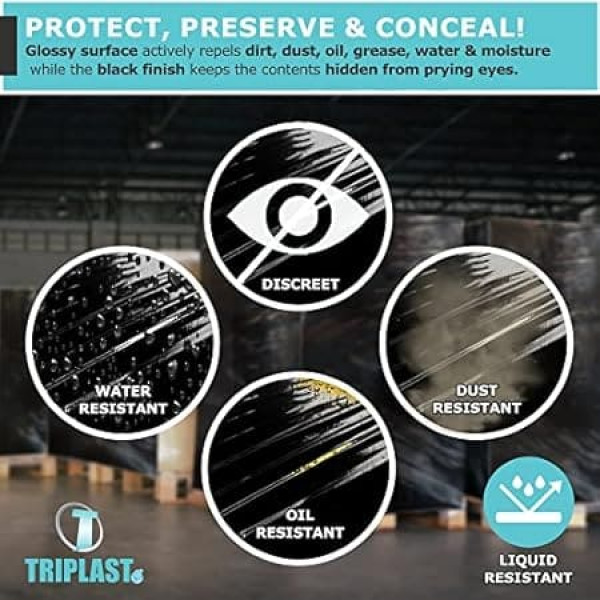 Triplast 400 mm x 250 m Extended Core Pallet Stretch Shrink Wrap - Black (Pack of 6)