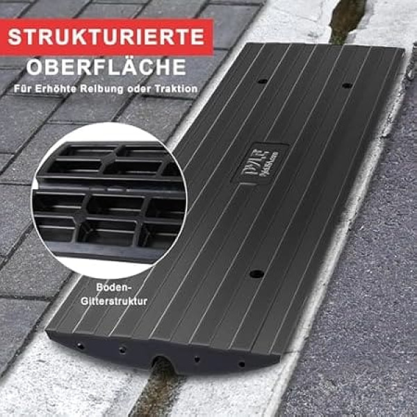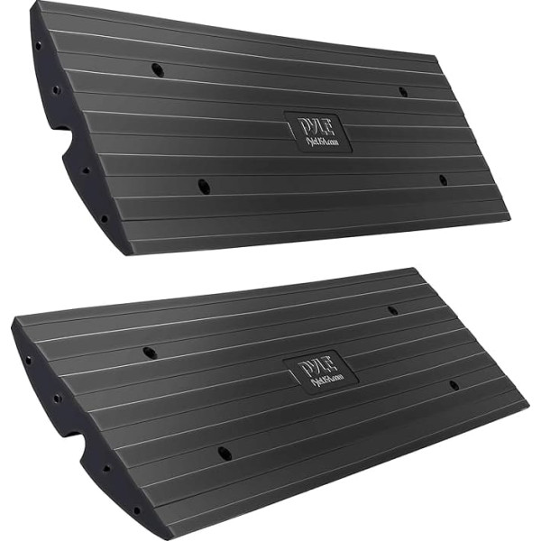 High load capacity: this curb ramp made of durable synthetic rubber supports loads of up to 4,990 kg - ideal as a car ramp for cars, trailers or as a motorcycle ramp. Non-slip surface: the textured surface of the car ramp provides optimal traction, even in damp conditions, and provides a secure grip for car, motorcycle or trailer. Waterproof construction: the weatherproof ramp is suitable for both indoor and outdoor use and is also suitable as a ramp for motorcycle or motorcycle trailers. Flexible attachment: thanks to the integrated cut-outs, the car ramp can be permanently attached if necessary. Large dimensions: at 122 cm × 40.6 cm × 6.6 cm, the ramp effectively bridges curbs and heels and is a perfect solution for driveways and garages. Includes 2 pieces › See more product details