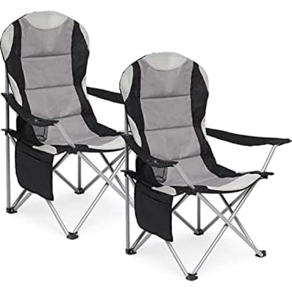 Mondeer Folding Camping Chairs, Set of 2, Padded Fishing Chair with Drink Holders and Side Pocket for Camping, Garden, Balcony, Beach, up to 120 kg, Dark Grey