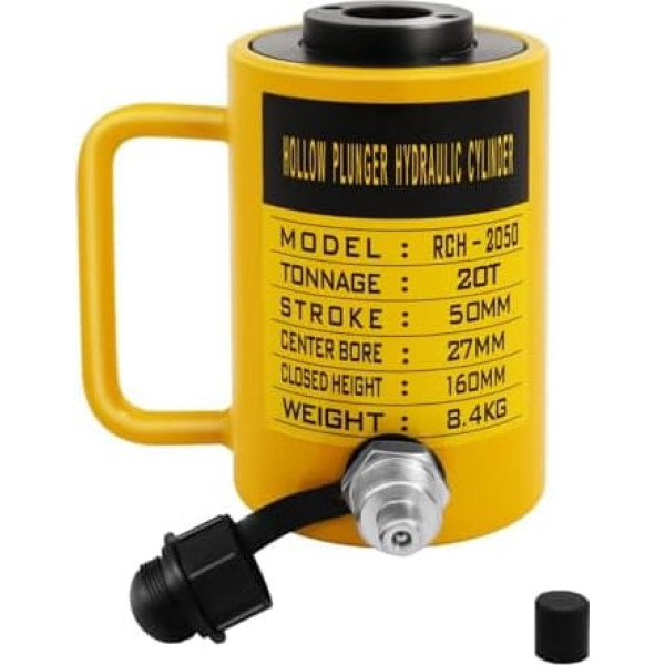 **HIGH CAPACITY**: This hydraulic jack has a capacity of 20T/44000LBS and provides robust lifting performance for heavy duty applications. **DURABLE CONSTRUCTION**: Constructed from solid metal, this lifter is built to last, ensuring stability and reliability during operation. **Efficient Operation**:Equipped with a compact structure and user-friendly design, this jack is easy to use and can provide reliable support for a long time. **VERSATILE PUMP COMPATIBILITY**: Compatible with hand, foot and electric pumps, providing flexibility in operation and ease of use. **WIDE APPLICATION**: An essential tool for riggers, processors, welders and automotive workshops, ideal for bending, straightening and pulling on trucks, tractors and heavy equipment. › See more product details; Product description Specification: Capacity: 20T/44000LBS Stroke of the pestle: 50 mm/2 in. Hole diameter: 28 mm/1.1 inches. Total height: 160 mm/6.3 inches. Outer diameter: 98 mm/3.8 inches. Inner diameter: 78 mm/3 inches. Diameter of main shaft: 53 mm/2 inches. Suitable pump: CP-700B Weight: 8.4 kg/18 lb. Operation: The product consists of a jack. It has a compact structure and is easy to use. When you use it, please insert the quick connector (6) of the rubber hose of the oil pump into the port of the jack and screw the jacket of the quick connector, then screw the oil return valve (4) tight and loosen the hex socket screw (2) on the back of the pump, pull the handle (1) up and down to bleed. Check the centre of gravity of the object to be lifted and select the working point when using the pump. The object to be lifted must not exceed its nominal weight, do not operate the product under overload. Unscrew the hex screw (3) on the back of the pump to refill oil if necessary. The oil must be clean and use the hydraulic oil YU-N15.; Product description Specification: Capacity: 20T/44000LBS Stroke of the pestle: 50 mm/2 in. Hole diameter: 28 mm/1.1 inches. Total height: 160 mm/6.3 inches. Outer diameter: 98 mm/3.8 inches. Inner diameter: 78 mm/3 inches. Diameter of main shaft: 53 mm/2 inches. Suitable pump: CP-700B Weight: 8.4 kg/18 lb. Operation: The product consists of a jack. It has a compact structure and is easy to use. When you use it, please insert the quick connector (6) of the rubber hose of the oil pump into the port of the jack and screw the jacket of the quick connector, then screw the oil return valve (4) tight and loosen the hex socket screw (2) on the back of the pump, pull the handle (1) up and down to bleed. Check the centre of gravity of the object to be lifted and select the working point when using the pump. The object to be lifted must not exceed its nominal weight, do not operate the product under overload. Unscrew the hex screw (3) on the back of the pump to refill oil if necessary. The oil must be clean and use the hydraulic oil YU-N15.; Specification: Capacity: 20T/44000LBS Stroke of the pestle: 50 mm/2 in. Hole diameter: 28 mm/1.1 inches. Total height: 160 mm/6.3 inches. Outer diameter: 98 mm/3.8 inches. Inner diameter: 78 mm/3 inches. Diameter of main shaft: 53 mm/2 inches. Suitable pump: CP-700B Weight: 8.4 kg/18 lb. Operation: The product consists of a jack. It has a compact structure and is easy to use. When you use it, please insert the quick connector (6) of the rubber hose of the oil pump into the port of the jack and screw the jacket of the quick connector, then screw the oil return valve (4) tight and loosen the hex socket screw (2) on the back of the pump, pull the handle (1) up and down to bleed. Check the centre of gravity of the object to be lifted and select the working point when using the pump. The object to be lifted must not exceed its nominal weight, do not operate the product under overload. Unscrew the hex screw (3) on the back of the pump to refill oil if necessary. The oil must be clean and use the hydraulic oil YU-N15.
