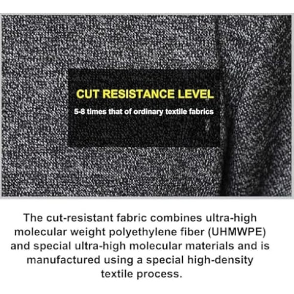 Suitable for metal making, sheet metal processing, knife making, glass cutting and handling, precision polishing, battle department, kitchen operation. Cut resistant fibre material Grade 5 PE combines ultra-high molecular weight polyethylene and special ultra-high molecular weight materials and is manufactured on special high density textile machines. Under the level 5 cut protection standard, it can also ensure good feel and convenience and is easy to clean. With excellent abrasion resistance, cut resistance and tear resistance. Concealment The appearance of the puncture resistant vest is the same as that of a normal vest. It does not affect normal clothing. It is not visible from the outside and puncture resistant. Various sizes available: there are different sizes to choose from. You can choose the right size for your own body and make it easier to choose. › See more product details; Product description Functional use: puncture and cut resistant, moisture absorbing and breathable, daily commuting, business trip, strip service Specification: Item Type:Clothing Material: cut-resistant PE 5 fabric/cut-resistant clothing. Colour: dark grey. Safety level: EN388, EN420. Optional size: S, M, L, XL. Package includes: 1 x clothing; Product description Functional use: puncture and cut resistant, moisture absorbing and breathable, daily commuting, business trip, strip service Specification: Item Type:Clothing Material: cut-resistant PE 5 fabric/cut-resistant clothing. Colour: dark grey. Safety level: EN388, EN420. Optional size: S, M, L, XL. Package includes: 1 x clothing; Functional use: puncture and cut resistant, moisture absorbing and breathable, daily commuting, business trip, strip service Specification: Item Type:Clothing Material: cut-resistant PE 5 fabric/cut-resistant clothing. Colour: dark grey. Safety level: EN388, EN420. Optional size: S, M, L, XL. Package includes: 1 x clothing
