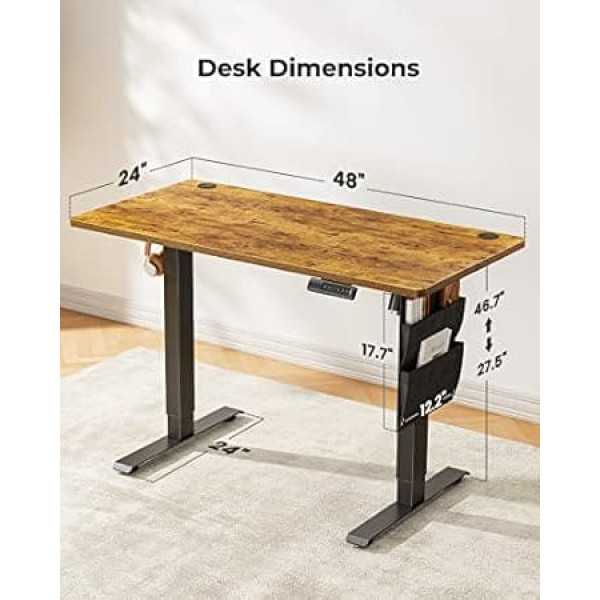 Marsail Electric Standing Desk Height Adjustable with Memory Presets, Storage Bag and Headphone Hook, 48" x 24" Ideal Standing Desk for Computer Workstations