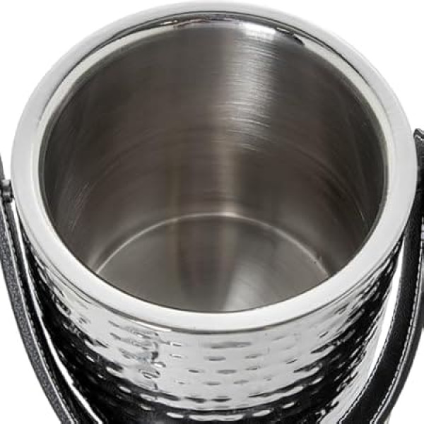 DRW Ice Bucket with Lid Made of Stainless Steel, Leather Handle, Glossy, 15 x 15 x 28 cm, Metal, Hammered Gloss, 15 x 15 x 28 cm