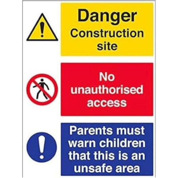 vsafety 6 C020bv-r"Multi Hazard Website Security/Parents Must Warn Children" Warning Building Sign, Rigid Plastic, Portrait, 600mm x 800mm, Black/Blue/Red/Yellow