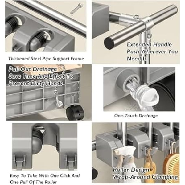 Im Gegensatz zu Kunststoff-Besenregalen bietet unser Besenregal aus Edelstahl eine hervorragende Wetterbeständigkeit, die bis zu 40 kg tragen kann. Es bietet Platz für verschiedene Reinigungswerkzeuge, einschließlich Mops, Besen und Lappen. Effiziente Werkzeugorganisation: Mit verdickten und verbreiterten Gummirillenklemmen bietet dieses Regal einen sicheren Halt für Ihre Gegenstände, verhindert ein Verrutschen und sorgt für einfachen Zugriff. Es ist für müheloses Einsetzen und Entfernen von Reinigungswerkzeugen konzipiert. 【Einfache Mobilität】 Ausgestattet mit vier um 360 Grad drehbaren Rädern, ermöglicht unsere Besen-Aufbewahrungsbox eine nahtlose Bewegung. Die feststellbaren Universalräder ermöglichen eine sichere Positionierung ohne Teppiche oder Hartholzböden zu beschädigen. 【Durchdachtes Design】Dieser mobile Aufbewahrungswagen für Reinigungswerkzeuge enthält einen großen Wassersammeltank, um Tropfen von nassen Mopps und Lappen aufzufangen. Diese Funktion fördert einen ordentlichen Trockenbereich für Ihre Werkzeuge und ist abnehmbar für eine einfache Wasserentsorgung. Vielseitig einsetzbar: Unser Besen- und Wischmoppständer ist perfekt für die Organisation einer Vielzahl von Gegenständen, einschließlich Mops, Besen, Rechen, Lappen, Schneeschaufeln, Schlüssel, Regenschirme, Bürsten, Handschuhe und mehr. Es maximiert effektiv den Platz und hilft, ein ordentliches Zuhause zu erhalten, wodurch es ideal für Garagenorganisation, Waschküchen, Schränke und Werkzeugaufbewahrung ist. › See more product details; Product description Material: Edelstahl. Montageart: Bodenstehend. **Montage erforderlich:** Ja. Tragkraft: 40 kg. Produktgröße: Bitte beachten Sie das Bild für Größenangaben. **Anwendungsbereich: Schulen, Krankenhäuser, Restaurants, Fabriken, Hotels, Immobilienunternehmen. Lieferumfang: 1 x Wischmopp- und Besenhalter. Wichtige Hinweise: 1. Bitte überprüfen Sie die Größe sorgfältig, bevor Sie bestellen. 2. Überschreiten Sie nicht den Tragbereich des Produkts. 3. Die Farbe des Produkts kann aufgrund von Lichteffekten leicht von den Bildern abweichen. Danke für Ihr Verständnis.; Product description Material: Edelstahl. Montageart: Bodenstehend. **Montage erforderlich:** Ja. Tragkraft: 40 kg. Produktgröße: Bitte beachten Sie das Bild für Größenangaben. **Anwendungsbereich: Schulen, Krankenhäuser, Restaurants, Fabriken, Hotels, Immobilienunternehmen. Lieferumfang: 1 x Wischmopp- und Besenhalter. Wichtige Hinweise: 1. Bitte überprüfen Sie die Größe sorgfältig, bevor Sie bestellen. 2. Überschreiten Sie nicht den Tragbereich des Produkts. 3. Die Farbe des Produkts kann aufgrund von Lichteffekten leicht von den Bildern abweichen. Danke für Ihr Verständnis.; Material: Edelstahl. Montageart: Bodenstehend. **Montage erforderlich:** Ja. Tragkraft: 40 kg. Produktgröße: Bitte beachten Sie das Bild für Größenangaben. **Anwendungsbereich: Schulen, Krankenhäuser, Restaurants, Fabriken, Hotels, Immobilienunternehmen. Lieferumfang: 1 x Wischmopp- und Besenhalter. Wichtige Hinweise: 1. Bitte überprüfen Sie die Größe sorgfältig, bevor Sie bestellen. 2. Überschreiten Sie nicht den Tragbereich des Produkts. 3. Die Farbe des Produkts kann aufgrund von Lichteffekten leicht von den Bildern abweichen. Danke für Ihr Verständnis.