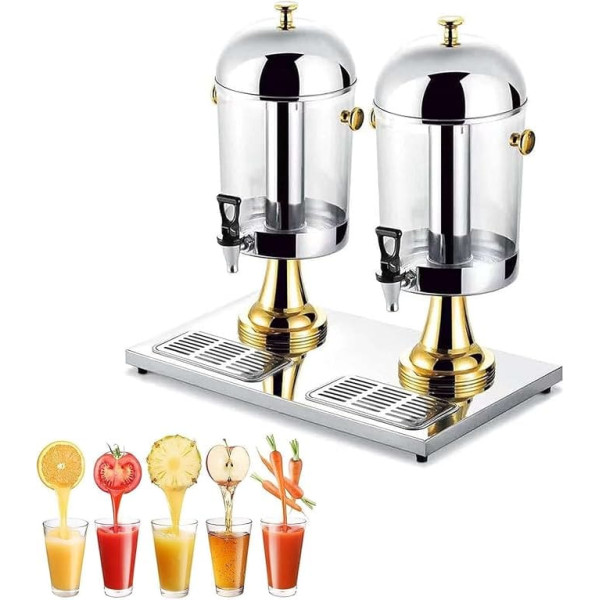 Der Getränkespender ist ein Highlight auf jedem Frühstücksbuffet, egal ob in Hotels, Hostels oder Restaurants. Erfrischende Kaltgetränke wie Säfte, Eistee oder Softdrinks werden Ihren Gästen in der ansprechenden Form eines Trinkbrunnens bereitgestellt. Der Saftgetränkespender mit Zapfhahn besteht aus Glas und ist so konstruiert, dass er häufigem Gebrauch standhält und den Abnutzungserscheinungen in der Gastronomie, im Restaurant oder zu Hause standhält. Saftspender mit Edelstahlrohr, das nach Belieben angebracht oder entfernt werden kann. Diese Röhre fasst bis zu 1 Liter und kann beispielsweise mit Eiswürfeln gefüllt werden, sodass die Getränketemperatur optimal kontrolliert bleibt. Die Konstruktion dieses Kaltgetränkeautomaten mit Zapfhahn aus handelsüblichem Edelstahl erleichtert die Reinigung und Wartung und sorgt dafür, dass er über lange Zeit in gutem Zustand bleibt. Unser Saftspender mit integrierter Auffangschale hält die direkte Umgebung des Getränkebrunnens sauber und ordentlich. Dies erleichtert auch eine schnelle und einfache Reinigung, da sich die Wanne leicht entnehmen und entleeren lässt. Praktisches Design: Verfügt über eine praktische Auffangschale zum Auffangen von verschütteten Flüssigkeiten, die leicht entfernt und geleert werden kann und so für mehr Sauberkeit in Ihrem Servierbereich sorgt › See more product details; Product description Dieser Saftspender ist eine raffinierte Lösung zum Servieren von gekühltem Saft oder anderen Getränken bei Buffets, Grillabenden und anderen Veranstaltungen.Spezifikation:Produktname: SaftspendermaschineStil: Doppelkopf, DreikopfFassungsvermögen: 16 l, 24 lFarbe: Silber, GoldenMaterial: Edelstahl, PC-KunststoffGewicht: 4,4 kg, 6,5 kgDoppelkopf: 55,8 × 34,2 × 57,6 cm/ 21,9 × 13,5 × 22,6 ZollDrei Köpfe: 85,8 × 34,2 × 57,6 cm/ 33,7 × 13,5 × 22,6 ZollEigenschaften: Kann Fruchtsaft trinken, Zwischeneiszapfen können zerstoßenes Eis hinzufügenPaket Inhalt:Saftspender×1Hinweise:1. Aufgrund unterschiedlicher Monitoreinstellungen und Lichtverhältnisse kann die tatsächliche Farbe leicht von der Abbildung abweichen. Vielen Dank!2. Die Maße wurden manuell bestimmt und können daher um 1-3 cm abweichen.; Product description Dieser Saftspender ist eine raffinierte Lösung zum Servieren von gekühltem Saft oder anderen Getränken bei Buffets, Grillabenden und anderen Veranstaltungen.Spezifikation:Produktname: SaftspendermaschineStil: Doppelkopf, DreikopfFassungsvermögen: 16 l, 24 lFarbe: Silber, GoldenMaterial: Edelstahl, PC-KunststoffGewicht: 4,4 kg, 6,5 kgDoppelkopf: 55,8 × 34,2 × 57,6 cm/ 21,9 × 13,5 × 22,6 ZollDrei Köpfe: 85,8 × 34,2 × 57,6 cm/ 33,7 × 13,5 × 22,6 ZollEigenschaften: Kann Fruchtsaft trinken, Zwischeneiszapfen können zerstoßenes Eis hinzufügenPaket Inhalt:Saftspender×1Hinweise:1. Aufgrund unterschiedlicher Monitoreinstellungen und Lichtverhältnisse kann die tatsächliche Farbe leicht von der Abbildung abweichen. Vielen Dank!2. Die Maße wurden manuell bestimmt und können daher um 1-3 cm abweichen.; Dieser Saftspender ist eine raffinierte Lösung zum Servieren von gekühltem Saft oder anderen Getränken bei Buffets, Grillabenden und anderen Veranstaltungen.Spezifikation:Produktname: SaftspendermaschineStil: Doppelkopf, DreikopfFassungsvermögen: 16 l, 24 lFarbe: Silber, GoldenMaterial: Edelstahl, PC-KunststoffGewicht: 4,4 kg, 6,5 kgDoppelkopf: 55,8 × 34,2 × 57,6 cm/ 21,9 × 13,5 × 22,6 ZollDrei Köpfe: 85,8 × 34,2 × 57,6 cm/ 33,7 × 13,5 × 22,6 ZollEigenschaften: Kann Fruchtsaft trinken, Zwischeneiszapfen können zerstoßenes Eis hinzufügenPaket Inhalt:Saftspender×1Hinweise:1. Aufgrund unterschiedlicher Monitoreinstellungen und Lichtverhältnisse kann die tatsächliche Farbe leicht von der Abbildung abweichen. Vielen Dank!2. Die Maße wurden manuell bestimmt und können daher um 1-3 cm abweichen.