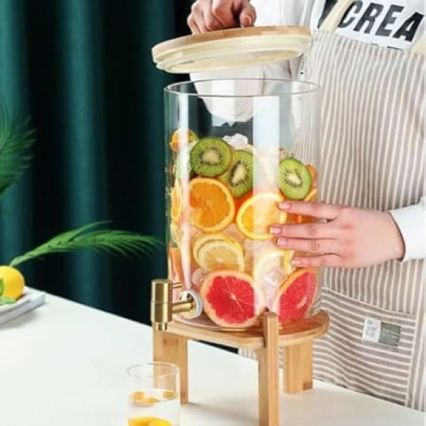 Flawless material: 1. Borosilicate glass, high temperature resistance; 2. Solid wood support, easy to install; 3.16 and 20 cm large mouth diameter, easy to clean and fill; 4. Handle design, easy to take the lid. COLD AND HOT DRINKS: This glass beverage dispenser made of glass with high borosilicate content, which is cold and heat resistant and can serve lemonade, fruit juice, oge juice, soft drinks, wine, kombucha, iced tea and hot drinks, etc. Can be used all year round. SEALED BAMBOO COVER: The glass drink dispenser is made of high-quality bamboo wood cover and environmentally friendly resin inner cover, which has the properties of no deformation and no peculiar smell. It can effectively prevent some unnecessary things from entering your drink. DOUBLE OUTLET VALVE SEAL LID The juice dispenser is equipped with a wooden sealing lid to keep dust and freshness. The automatic outlet valve can automatically remove excess gas in the bottle in one direction. When opening and closing the lid, it is necessary to lift the manual outlet valve to release the sealing condition in the cylinder. Multi-purpose: the glass drink liquid dispenser can hold a variety of cold or hot drinks, e.g. punch bog, hot cider, juice, lemonade, water, tea, milk, etc. and can be stored in the fridge › See more product details; Product description Serve your favourite drinks more stylishly than ever with this practical drink dispenser! Whether refreshing summer cocktail or refreshing lemonade, with this practical lemonade dispenser, your party guests can order a drink from the elegant punch container at any time. Feature: The drink machine in glass bottles features a sealed wooden cover, which is healthy and corrosion resistant. The large opening design of the juice drink machine is convenient for your filling and cleaning. The practical stainless steel handle on the lid allows easy opening of the drink dispenser. Fruit enzymes, fruit juice drinks, bubble tea, bubble wine, everything can be built-in. Concise fibreglass appeace and wooden bracket, stable base, easy to install and not easy to fall. Beautiful and elegant, suitable for home, parties, wedding banquets, cafeterias and other occasions. Specification: Name: Beverage Dispenser Container: borosilicate glass; Faucet: stainless steel. Cover: wood, silicone; Bracket: wood. Capacity: 10L, 12L, 15L. Packing list: 1 juice dispenser (including lid, tap, stand).; Product description Serve your favourite drinks more stylishly than ever with this practical drink dispenser! Whether refreshing summer cocktail or refreshing lemonade, with this practical lemonade dispenser, your party guests can order a drink from the elegant punch container at any time. Feature: The drink machine in glass bottles features a sealed wooden cover, which is healthy and corrosion resistant. The large opening design of the juice drink machine is convenient for your filling and cleaning. The practical stainless steel handle on the lid allows easy opening of the drink dispenser. Fruit enzymes, fruit juice drinks, bubble tea, bubble wine, everything can be built-in. Concise fibreglass appeace and wooden bracket, stable base, easy to install and not easy to fall. Beautiful and elegant, suitable for home, parties, wedding banquets, cafeterias and other occasions. Specification: Name: Beverage Dispenser Container: borosilicate glass; Faucet: stainless steel. Cover: wood, silicone; Bracket: wood. Capacity: 10L, 12L, 15L. Packing list: 1 juice dispenser (including lid, tap, stand).; Serve your favourite drinks more stylishly than ever with this practical drink dispenser! Whether refreshing summer cocktail or refreshing lemonade, with this practical lemonade dispenser, your party guests can order a drink from the elegant punch container at any time. Feature: The drink machine in glass bottles features a sealed wooden cover, which is healthy and corrosion resistant. The large opening design of the juice drink machine is convenient for your filling and cleaning. The practical stainless steel handle on the lid allows easy opening of the drink dispenser. Fruit enzymes, fruit juice drinks, bubble tea, bubble wine, everything can be built-in. Concise fibreglass appeace and wooden bracket, stable base, easy to install and not easy to fall. Beautiful and elegant, suitable for home, parties, wedding banquets, cafeterias and other occasions. Specification: Name: Beverage Dispenser Container: borosilicate glass; Faucet: stainless steel. Cover: wood, silicone; Bracket: wood. Capacity: 10L, 12L, 15L. Packing list: 1 juice dispenser (including lid, tap, stand).