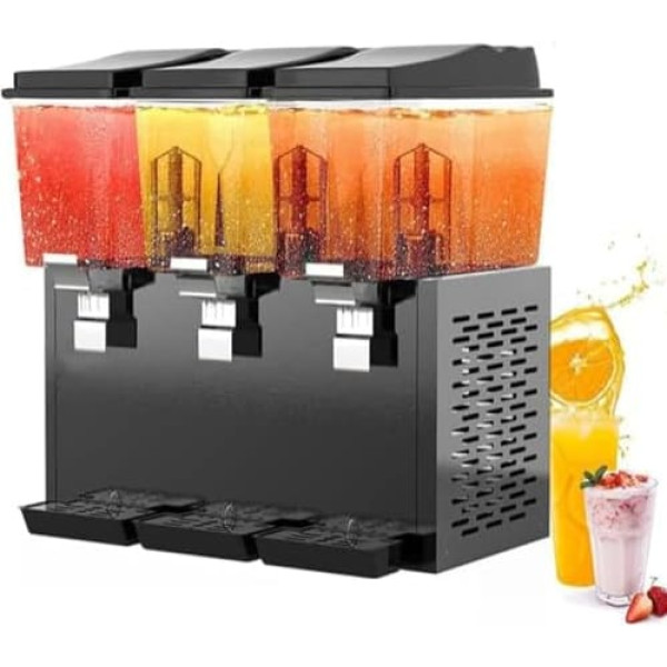 Große Kapazität: Verfügt über ein Fassungsvermögen von 32 l / 48 l für große Mengen an Getränken. Die verbesserte Mischklinge sorgt für minimale Ablagerungen durch gründliches Rühren von Getränken in alle Richtungen, während eine Gummidichtung effektiv verhindert, dass Saft austritt. 【Temperaturregelung】Ausgestattet mit Kühl- und Heizfunktionen, die Temperaturstufen zwischen 7 °C bis 12 °C für kalte Getränke und 52 °C bis 58 °C für heiße Getränke ermöglichen. Dadurch ist es für den ganzjährigen Einsatz geeignet, mit einfach zu bedienenden Schaltern zur Einstellung der Kühl- und Rühreinstellungen. Langlebige Konstruktion: Hergestellt aus lebensmittelechtem PC-Material, bietet überlegene Haltbarkeit im Vergleich zu zerbrechlichen ABS/AS-Tanks. Sein verdickter Körper mit Spiegel-Finish erhöht nicht nur die Steifigkeit, sondern sorgt auch für Langlebigkeit. Das rostfreie Design vereinfacht die Reinigung und Wartung. 【Effizientes Kühlsystem】Verfügt über einen hocheffizienten Kühlmechanismus, der den Kühlprozess beschleunigt. Seitliche Kühllöcher erleichtern eine bessere Belüftung und Wärmeableitung, wodurch die Lebensdauer der Maschine verlängert und eine schnelle Wärmeverteilung gewährleistet wird. Vielseitig einsetzbar: Ideal für eine Vielzahl von Umgebungen, einschließlich Kettenrestaurants, Convenience-Stores, Hotels und Fitnessstudios. Kann eine Vielzahl von Getränken wie Sojamilch, Smoothies, Säfte, Cocktails, Joghurt und Kaffee servieren, was es zu einer perfekten Ergänzung für jedes geschäftige Gastronomieunternehmen macht. › See more product details; Product description Der kommerzielle Saftgetränkespender ist sowohl für heiße als auch kalte Getränke konzipiert und verfügt über eine automatische Temperaturregelung für optimales Servieren von Getränken. Erhältlich in drei Größen: 16L, 32L und 48L, um verschiedene kommerzielle Bedürfnisse zu erfüllen. Das 32-Liter-Modell wird mit einem Doppelzylinder mit den Maßen 420 x 450 x 680 mm geliefert und arbeitet mit einer Kühlleistung von 230 W und einer Heizleistung von 1210 W. Hält Temperaturen zwischen 7 ~ 12 °C für kalte Getränke und 52 ~ 58 °C für heiße Getränke, enthält eine Rührfunktion und wiegt 26 kg. Das 48-Liter-Modell verfügt über drei Zylinder, misst 620 x 450 x 680 mm und arbeitet mit einer Kühlleistung von 300 W und einer Heizleistung von 1830 W. Es behält auch die gleichen Temperaturbereiche für heiße und kalte Getränke, einschließlich Rühren und wiegt 36 kg. Jedes Paket enthält eine Kaltgetränkemaschine. Wichtige Verwendungsrichtlinien umfassen das Halten des Flüssigkeitsstandes bis zu 2/3 des Behälters, das Überschreiten der minimalen und maximalen Füllstandslinien nicht, das Ausschalten des Kühlschalters alle vier Stunden, um ein Einfrieren zu verhindern und sicherzustellen, dass der Mischschalter eingeschaltet ist, wenn der Kühlschalter aktiv ist.; Product description Der kommerzielle Saftgetränkespender ist sowohl für heiße als auch kalte Getränke konzipiert und verfügt über eine automatische Temperaturregelung für optimales Servieren von Getränken. Erhältlich in drei Größen: 16L, 32L und 48L, um verschiedene kommerzielle Bedürfnisse zu erfüllen. Das 32-Liter-Modell wird mit einem Doppelzylinder mit den Maßen 420 x 450 x 680 mm geliefert und arbeitet mit einer Kühlleistung von 230 W und einer Heizleistung von 1210 W. Hält Temperaturen zwischen 7 ~ 12 °C für kalte Getränke und 52 ~ 58 °C für heiße Getränke, enthält eine Rührfunktion und wiegt 26 kg. Das 48-Liter-Modell verfügt über drei Zylinder, misst 620 x 450 x 680 mm und arbeitet mit einer Kühlleistung von 300 W und einer Heizleistung von 1830 W. Es behält auch die gleichen Temperaturbereiche für heiße und kalte Getränke, einschließlich Rühren und wiegt 36 kg. Jedes Paket enthält eine Kaltgetränkemaschine. Wichtige Verwendungsrichtlinien umfassen das Halten des Flüssigkeitsstandes bis zu 2/3 des Behälters, das Überschreiten der minimalen und maximalen Füllstandslinien nicht, das Ausschalten des Kühlschalters alle vier Stunden, um ein Einfrieren zu verhindern und sicherzustellen, dass der Mischschalter eingeschaltet ist, wenn der Kühlschalter aktiv ist.; Der kommerzielle Saftgetränkespender ist sowohl für heiße als auch kalte Getränke konzipiert und verfügt über eine automatische Temperaturregelung für optimales Servieren von Getränken. Erhältlich in drei Größen: 16L, 32L und 48L, um verschiedene kommerzielle Bedürfnisse zu erfüllen. Das 32-Liter-Modell wird mit einem Doppelzylinder mit den Maßen 420 x 450 x 680 mm geliefert und arbeitet mit einer Kühlleistung von 230 W und einer Heizleistung von 1210 W. Hält Temperaturen zwischen 7 ~ 12 °C für kalte Getränke und 52 ~ 58 °C für heiße Getränke, enthält eine Rührfunktion und wiegt 26 kg. Das 48-Liter-Modell verfügt über drei Zylinder, misst 620 x 450 x 680 mm und arbeitet mit einer Kühlleistung von 300 W und einer Heizleistung von 1830 W. Es behält auch die gleichen Temperaturbereiche für heiße und kalte Getränke, einschließlich Rühren und wiegt 36 kg. Jedes Paket enthält eine Kaltgetränkemaschine. Wichtige Verwendungsrichtlinien umfassen das Halten des Flüssigkeitsstandes bis zu 2/3 des Behälters, das Überschreiten der minimalen und maximalen Füllstandslinien nicht, das Ausschalten des Kühlschalters alle vier Stunden, um ein Einfrieren zu verhindern und sicherzustellen, dass der Mischschalter eingeschaltet ist, wenn der Kühlschalter aktiv ist.