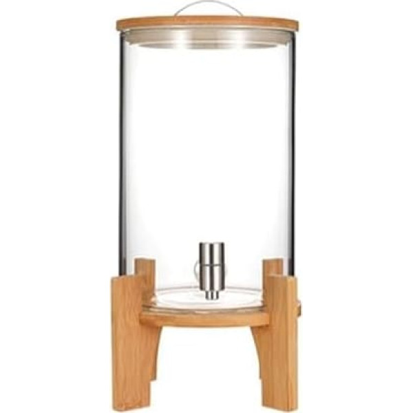 Getränkespender aus Glas mit Edelstahlhahn - Kaltgetränke Wasserspender Glasbehälter mit Bambusständer - Hitzebeständiges Borosilic Glas