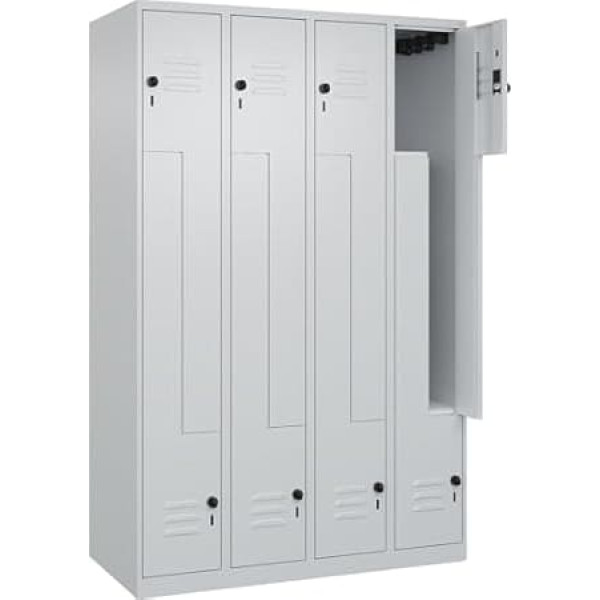 Fronts also have ventilation gills for even more effective ventilation Closed door side profiles for high torsional rigidity Body with ventilation openings at the top and bottom for optimal air circulation Z-shaped division for hanging long garments with reduced space requirements in the room Customisable with feet, base and floor gliders › See more product details; Product description The Z-Locker Classic Plus impresses with its robust body and its versatile equipment options. Made from a sturdy steel construction with high-quality stoving coating, the locker offers outstanding UV and corrosion resistance. The rear vents ensure optimal air circulation and prevent unpleasant odours. Thanks to the soft-stop doors and the closed side profiles, the locker is particularly stable and quiet in use. The doors are hitting each other and are hung in sturdy pivot bolts. Choose between two different locking systems: - Ergonomic safety twist lock for padlocks - Cylinder lock incl. spare key With a spacious compartment including clothes rail with 3 hooks per compartment, the locker offers a comfortable hanging option even for long garments. The debossed label frames make it easy to label and organise the contents. The locker is ideal for changing rooms or social rooms in schools and universities, sports clubs, healthcare but also for industrial and manufacturing companies. If you do not find what you are looking for in our standard range, contact our customer service and we will help you find alternatives tailored to your needs. This product is manufactured to order and is therefore excluded from the right of return.; Product description The Z-Locker Classic Plus impresses with its robust body and its versatile equipment options. Made from a sturdy steel construction with high-quality stoving coating, the locker offers outstanding UV and corrosion resistance. The rear vents ensure optimal air circulation and prevent unpleasant odours. Thanks to the soft-stop doors and the closed side profiles, the locker is particularly stable and quiet in use. The doors are hitting each other and are hung in sturdy pivot bolts. Choose between two different locking systems: - Ergonomic safety twist lock for padlocks - Cylinder lock incl. spare key With a spacious compartment including clothes rail with 3 hooks per compartment, the locker offers a comfortable hanging option even for long garments. The debossed label frames make it easy to label and organise the contents. The locker is ideal for changing rooms or social rooms in schools and universities, sports clubs, healthcare but also for industrial and manufacturing companies. If you do not find what you are looking for in our standard range, contact our customer service and we will help you find alternatives tailored to your needs. This product is manufactured to order and is therefore excluded from the right of return.; The Z-Locker Classic Plus impresses with its robust body and its versatile equipment options. Made from a sturdy steel construction with high-quality stoving coating, the locker offers outstanding UV and corrosion resistance. The rear vents ensure optimal air circulation and prevent unpleasant odours. Thanks to the soft-stop doors and the closed side profiles, the locker is particularly stable and quiet in use. The doors are hitting each other and are hung in sturdy pivot bolts. Choose between two different locking systems: - Ergonomic safety twist lock for padlocks - Cylinder lock incl. spare key With a spacious compartment including clothes rail with 3 hooks per compartment, the locker offers a comfortable hanging option even for long garments. The debossed label frames make it easy to label and organise the contents. The locker is ideal for changing rooms or social rooms in schools and universities, sports clubs, healthcare but also for industrial and manufacturing companies. If you do not find what you are looking for in our standard range, contact our customer service and we will help you find alternatives tailored to your needs. This product is manufactured to order and is therefore excluded from the right of return.