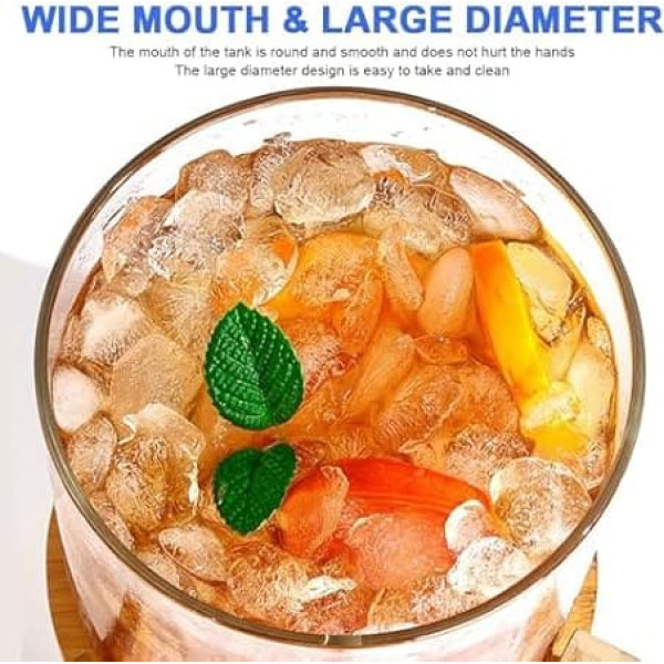 Quality glass wine barrel: the wine bottle is made of high-quality and durable lead-free glass material as well as the stainless steel tap design, which ensures the quality of the product. The tap releases water smoothly and is not easy to leak. Ready to use, convenient and quick to use. Fruit strainer and durable: juice dispenser. Made of thick, high-quality glass, the 5 litre mason jar offers both elegance and strength to enhance your party or home. Glass Water Dispenser The stainless steel lid with large opening diameter guarantees a tight seal and preserves freshness. Spout and cover: the fridge water dispenser has a large diameter spout that allows you to easily mix drinks with fruit. This makes it very easy to use and clean. The glass drink dispenser also features a silicone lined wooden lid that keeps dust and water vapour out well, so you can use the glass drink dispenser for longer. Iron/wood base: the iron/solid wood base ensures that the product can be placed more stable and less easily slipped. Practical and does not take up much space. You can easily place it in different places, such as in the family kitchen, living room, balcony or recreation room, and enjoy a cold drink anytime and anywhere. Cold drink dispenser: do not fill with hot water above 40 °C. It has been sterilised several times before leaving the factory and can be washed with tap water. Stainless steel tap attaches to the dispenser for an even stream of cool drinks. The tap is 100% leak-proof and drip-free. › See more product details; Product description This barrel drink dispenser is made of high quality durable thick glass. It is sure to add a gorgeous look to your party or home. Also comes with a wooden stand and a stainless steel tap for easy pouring. The barrel drink dispenser keeps contents fresh for longer. Specification: Material: glass + stainless steel + wood. Colour: transparent. Stainless Steel Faucet Iron/Wood Shelf Use: weddings, banquets, lemon juice drinks Package includes: 1 x drink dispenser. 1 x stainless steel tap. 1 x wooden stand. Note: 1. Please allow slight errors due to manual measurement. 2. Due to the difference between different monitors, the picture may not reflect the actual colour of the item.; Product description This barrel drink dispenser is made of high quality durable thick glass. It is sure to add a gorgeous look to your party or home. Also comes with a wooden stand and a stainless steel tap for easy pouring. The barrel drink dispenser keeps contents fresh for longer. Specification: Material: glass + stainless steel + wood. Colour: transparent. Stainless Steel Faucet Iron/Wood Shelf Use: weddings, banquets, lemon juice drinks Package includes: 1 x drink dispenser. 1 x stainless steel tap. 1 x wooden stand. Note: 1. Please allow slight errors due to manual measurement. 2. Due to the difference between different monitors, the picture may not reflect the actual colour of the item.; This barrel drink dispenser is made of high quality durable thick glass. It is sure to add a gorgeous look to your party or home. Also comes with a wooden stand and a stainless steel tap for easy pouring. The barrel drink dispenser keeps contents fresh for longer. Specification: Material: glass + stainless steel + wood. Colour: transparent. Stainless Steel Faucet Iron/Wood Shelf Use: weddings, banquets, lemon juice drinks Package includes: 1 x drink dispenser. 1 x stainless steel tap. 1 x wooden stand. Note: 1. Please allow slight errors due to manual measurement. 2. Due to the difference between different monitors, the picture may not reflect the actual colour of the item.