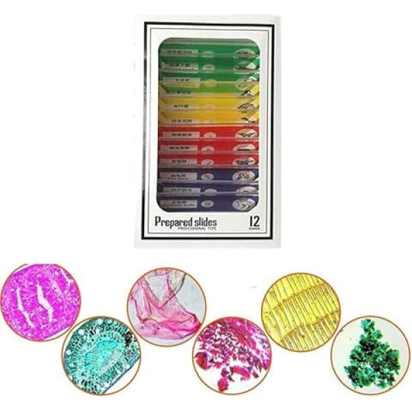 Microscope Accessories Kit, Slide Prep, Camera, 12Pcs/Set, Biological Sample Kit, Microscope Slide, Sample Microscope Accessories