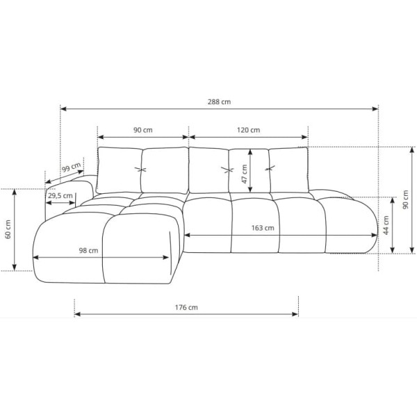 Bed linen containers – Our corner sofas are equipped with a spacious shelf in which you can comfortably store your cushions and blankets. In this way, you have easy access to them while keeping your living room tidy. You can also store children's toys or bedding Soft PUR seat - Immerse yourself in unparalleled comfort with a soft PUR foam seat T-3042 and T-2542. This material supports the back perfectly and adapts perfectly to the body shape. Furniture with a foam seat is an excellent choice if you are looking for a comfortable and durable piece of furniture for years to come Freestanding furniture - Our corner sofas are freestanding furniture, which means you can place them anywhere in your living room. In addition, the corner sofa has a choice of sides. The padded back of the furniture gives you freedom of design and allows you to use the space creatively and functionally. The elegant design adds a modern touch to your room Timeless design - Our corner sofa is the ideal solution for anyone who wants to combine elegance with functionality. Its minimalist design matches any decor style and gives the living room a unique charm that will remain modern for years to come Easy to unfold – with the automatic spring unfolding system, the sofa can be quickly and effortlessly transformed into a comfortable bed. With a few simple steps, you can enjoy a comfortable sleeping place. It is ideal for unexpected visits and unfolding the bed is also convenient for the elderly or children › See more product details; Product description Product description Technical data: Height - 90 cm Width - 114\; Product description Product description Technical data: Height - 90 cm Width - 114\; Product description Technical data: Height - 90 cm Width - 114\