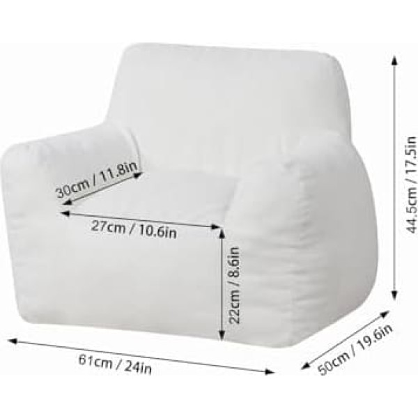 【Kids Size】The size of the children's sofa is: 61cm x 50cm x 44.5cm, and the seat is empty: 27cm x 30cm, this children's bean bag is very suitable for children under 3 years old. Comfortable materials: our children's sofas are made of soft corduroy fabric for beauty and comfort, the whole sofa does not contain hard objects to ensure that the child is not injured by hard objects. Safe and environmentally friendly: the zip of our children's sofa is designed to prevent children from pulling around, which ensures the safety of your child. High density foam padding: The children's bean bag chair is filled with high-density shredded foam to ensure that the child can sit down to adapt better to the body, and has better support and comfort than traditional bean bag chairs. Lightweight design: Our bean bag chair is very lightweight and has a handle on the back, so your child can easily carry the sofa from the living room to the bedroom and playroom so your child can have fun. › See more product details; Product description The padding of the child seat chair is a broken sponge that has no sharp objects to ensure that it does not harm the child. It is durable enough to make it comfortable enough for your child to sit on it. The size of the children's sofa is 61 cm x 50 cm x 44.5 cm, and the size of the seat is 27 cm x 30 cm, which is suitable for children under 3 years.; Product description The padding of the child seat chair is a broken sponge that has no sharp objects to ensure that it does not harm the child. It is durable enough to make it comfortable enough for your child to sit on it. The size of the children's sofa is 61 cm x 50 cm x 44.5 cm, and the size of the seat is 27 cm x 30 cm, which is suitable for children under 3 years.; The padding of the child seat chair is a broken sponge that has no sharp objects to ensure that it does not harm the child. It is durable enough to make it comfortable enough for your child to sit on it. The size of the children's sofa is 61 cm x 50 cm x 44.5 cm, and the size of the seat is 27 cm x 30 cm, which is suitable for children under 3 years.