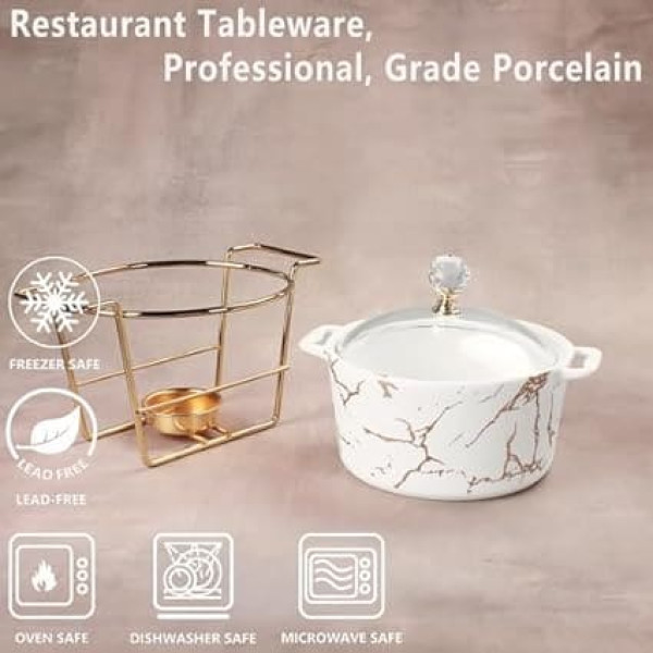 jinsongdafa French Porcelain Terrine Set with Glass Lid and Rack, 2500ml Casserole Dish Buffet Chafing Dish Casserole Dish for Food Storage, Catering Casserole Dish