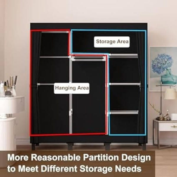 STURDY & DURABLE The thickened scratch-resistant base of the wardrobe is made of high quality plastic. 13.2 x 0.22 cm, thickened pipes and connectors ensure that the fabric cabinet does not easily deform and collapse LARGE STORAGE SPACE Measuring 172 x 130 x 45, this fabric cabinet provides ample space for all your storage needs. Different sized compartments keep your cupboard tidy Thoughtful design: the zip door of the foldable wardrobe is easy to close, and the fabric of the fabric cabinet is waterproof, breathable and not easy to tear, the contents of the wardrobe are protected from dust and moisture. Minimalist design: the minimalist design of the open travel cabinet impresses and blends seamlessly into any room style. It can be used not only as a practical clothing shelf, but also as a stylish room decoration Easy to install: the installation of the wardrobe is very easy. Pipes and plastic connections can be easily mounted without additional tools. With this fabric cabinet, you save time and energy › See more product details