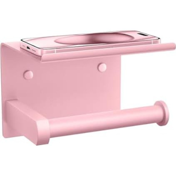 Tindbea Toilet Paper Holder with Phone Shelf, Adhesive or Screw Wall Holder for Toilet Paper Rolls, Rustproof & Multifunctional Stainless Steel Bathroom Storage Dispenser (Blush Pink)