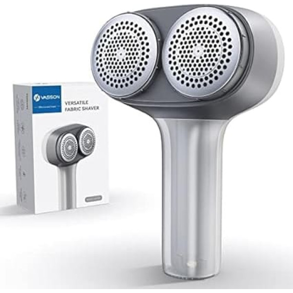 VASSON Fabric Shaver, Electric Lint Remover, Rechargeable Lint Shaver, Sweater Shaver for Removing Pilling, Large Lint Remover for Clothes, Couch, Furniture (Grey White)