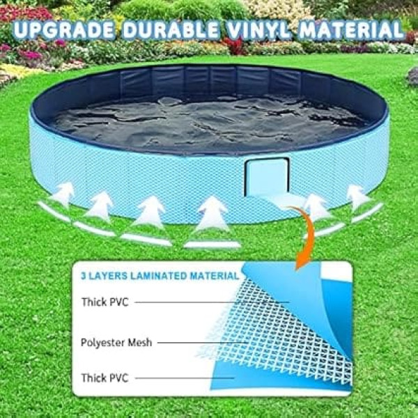 【Safe Durable Pet Dog Swimming Pool】: Pet Bathing Tub is made of extra-tough, high-quality, tasteless PVC composite, which is safe and non-toxic, durable and scratch-resistant. The built-in 6 mm thick, high-strength, compressed fibreboard provides extra grip, making the entire pool stronger and does not collapse. 【Non-slip and Strong Bathtub for Kids/Pets】: The bottom material is thickened and the bottom has a non-slip and wear-resistant texture. When the dog jumps into the pet pool or the child plays in the swimming pool, this prevents the dog and child from slipping and makes the pet pool stronger. This pet bath water basin can withstand daily use without licking or collapsing, even when full. Foldable and portable dog pool: the children's bath pool can be easily opened and folded without having to inflate it. The easy to carry pet swimming pool adopts a spiral drain design, rotates and opens and is convenient to empty The drain cover is well sealed, you don't have to worry about water leaks. 32 inches diameter and 8 inches depth. This size is great. Suitable for pets up to 40 pounds. 【All-purpose Foldable Pet Pool for Pets】: This kids pool can be used indoors and outdoors, not only as a dog cat pool, dog bathtub, fish pond, baby bathtub, children's bathtub, children's toy, children's ball pits, baby bathtub, but also a medical bath. Filled with water, sand or sea balls as a ball pit to provide children and pets with good entertainment, they can have fun together. 【COLD & UV RESISTANT DOG BATH 】It is not balanced even when used below zero and is suitable for different environments. In addition, the children's swimming pool has UV protection that is good for the eyes of pets and keeps cold and lasts longer. 100% Satisfaction --- We offer replacement or refund and lifetime customer service, if there are quality problems, just contact us and we will offer a solution immediately. › See more product details; Product description dog pool; Product description dog pool; dog pool