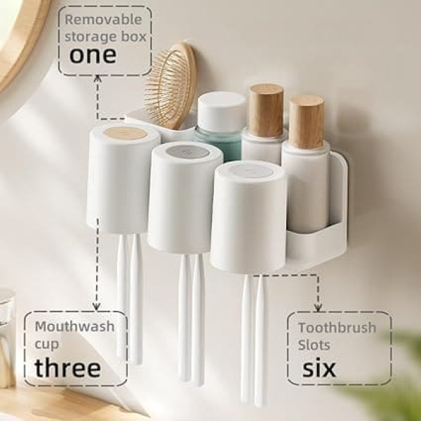 Multifunctional design: it combines toothbrush cup holder and toothbrush holder, equipped with 3 toothbrush cups and 1 movable toothpaste holder, can store 6 toothbrushes, it can deposit electric toothbrush, razor, comb, dental floss, make-up brush, facial cleanser, etc. Ensure that your bathroom, washbasin, desk etc. are no longer messy Wall-mounted toothbrush holder: the hung electric toothbrush holder effectively uses the space on the wall, avoiding clutter on the worktop and making the bathroom look more spacious and tidy. Our toothbrush holder without drilling is a great bathroom organiser and bathroom accessories Strong adhesive for firm attachment: the high-quality adhesive ensures that the toothbrush holder is firmly attached to the wall. Quick and easy installation of the brush holder without drilling, in the meantime, it can carry a certain weight and there is no reason to worry about it falling off. It protects the wall while providing reliable support Compatible with multiple electric toothbrushes: thanks to its unique design electric toothbrush holder, it is compatible with various common electric toothbrushes. The 6 toothbrush head holders make it easy for you to store multiple replacement toothbrush heads, making the storage of your electric toothbrushes more regular and easier to access Easy to clean and durable material: electric toothbrush holder made of ABS + PP+ silicone, BPA-free, round and smooth edges, burr-free, very durable, no need to worry about breakage or rust. You just need to wipe it off after daily use to keep it clean and hygienic. The sturdy and durable materials guarantee the long-term use of the product and offer you lasting comfort and value. › See more product details