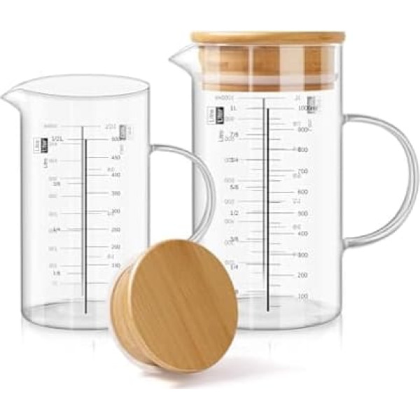 Hochwertige Materialien: Dieser messbecher glas ist aus robustem und langlebigem borosilikatglas gefertigt, das kälte und hitzebeständig ist, egal ob es gekühlt oder bei hohen temperaturen erhitzt wird. Mit holzdeckel und lebensmittelechtem siegel verhindert er nicht nur effektiv staub und frische, sondern auch das verschütten von flüssigkeiten, ideal für die aufbewahrung von lebensmitteln in der küche. Präzise Messskalen: Dieser glas messbecher verfügt über zwei präzise messskalen – milliliter und portionsangaben. Klare messlinien auf beiden seiten des transparenten bechers ermöglichen eine einfache ablesung. Ob sie milch, Öl oder wasser abmessen möchten, sie können die benötigte menge genau dosieren. Präzises backen und kochen wird zum kinderspiel und erfüllt alle Ihre kulinarischen anforderungen! Benutzerfreundliches Design: Basierend auf den prinzipien der strömungslehre sorgt der v-förmige ausguss für ein tropffreies ausgießen. egal, ob sie soßen, teig oder suppe servieren, sie behalten die kontrolle und vermeiden verschütten. Komfortabler griff, der ergonomisch geformte griff liegt angenehm in der hand und bietet sicheren halt, selbst wenn der meßbecher nass ist. Die hitzeisolierende beschichtung schützt zudem vor verbrennungen und macht das kochen sicherer und komfortabler. Vielseitige Einsatzmöglichkeiten: Dieser messbecher küche ist nicht nur ein aufbewahrungsbehälter, sondern auch ein unverzichtbarer helfer in der küche. Ob sie flüssigkeiten trennen, milch erhitzen, teig anrühren, backzutaten vorbereiten, eier verquirlen oder getränke mixen möchten – dieser messkrug mit holzdeckel erfüllt alle Ihre anforderungen. Ein vielseitiges küchenwerkzeug, das Ihnen ein effizientes und komfortables kocherlebnis bietet! Großes Fassungsvermögen: Mit einem großen fassungsvermögen von 500ml+1000ml erfüllt dieser messkrug alle Ihre küchenbedürfnisse und gibt Ihnen die freiheit, kreativ zu kochen. Egal, ob sie lebensmittel aufbewahren, zutaten abmessen, mischen oder ausgießen möchten – dieser measuring cups messbecher glas 1L ist immer die perfekte wahl. Genießen sie die freude am kochen und backen ohne einschränkungen! › See more product details; Product description Warum ist dieser messbecher ein must-have für Ihre küche?Unser klarglas messbecher mit holzdeckel kombiniert stilvolles design mit praktischer funktionalität. Der transparente glasbecher zeigt klare mess-skalen, sodass sie flüssigkeiten und trockene zutaten präzise abmessen können. Egal, ob sie 200ml milch für den pfannkuchenteig oder 350g mehl für den kuchen benötigen – mit diesem messbecher wird jedes rezept ein erfolg!Praktische details, die überzeugenHolzdeckel: Der holzdeckel schützt vor verschmutzungen und hält Ihre zutaten frisch. Gleichzeitig verhindert er, dass etwas verschüttet wird – perfekt für die aufbewahrung von lebensmitteln oder zur verwendung in der küche.V-Ausguss: der speziell geformte ausguss sorgt für ein tropffreies Eingießen. Kein kleckern mehr, wenn sie Öl, saucen oder teig portionieren.Robustes Glas: Der messbecher ist aus hochwertigem, hitzebeständigem glas gefertigt, kälte und hitzebeständigkeit, ob heiße brühe oder kalte milch – dieser becher ist immer einsatzbereit.Griff für Komfortables Handling: Der ergonomische griff liegt gut in der hand und gibt Ihnen sicheren halt – auch bei nassen oder glitschigen flüssigkeiten.Zwei Größen für Jede Küchensituation: Ob sie eine kleine menge für ein schnelles rezept oder eine größere portion für die ganze familie benötigen – der messbecher ist in zwei praktischen größen erhältlich: 500ml und 1000ml. So sind sie für jede herausforderung in der küche gewappnet.Ideal für Backen, Kochen & Mehr: Dieser messbecher ist nicht nur ein helfer beim backen, sondern auch beim kochen, mixen oder sogar für die aufbewahrung von gewürzen und zutaten. Die glasmessbecher sind auf der vorder- und rückseite mit klaren skalen bedruckt und der transparenten glasoptik behalten sie immer den Überblick – ohne umständliches umfüllen oder nachmessen.; Product description Warum ist dieser messbecher ein must-have für Ihre küche?Unser klarglas messbecher mit holzdeckel kombiniert stilvolles design mit praktischer funktionalität. Der transparente glasbecher zeigt klare mess-skalen, sodass sie flüssigkeiten und trockene zutaten präzise abmessen können. Egal, ob sie 200ml milch für den pfannkuchenteig oder 350g mehl für den kuchen benötigen – mit diesem messbecher wird jedes rezept ein erfolg!Praktische details, die überzeugenHolzdeckel: Der holzdeckel schützt vor verschmutzungen und hält Ihre zutaten frisch. Gleichzeitig verhindert er, dass etwas verschüttet wird – perfekt für die aufbewahrung von lebensmitteln oder zur verwendung in der küche.V-Ausguss: der speziell geformte ausguss sorgt für ein tropffreies Eingießen. Kein kleckern mehr, wenn sie Öl, saucen oder teig portionieren.Robustes Glas: Der messbecher ist aus hochwertigem, hitzebeständigem glas gefertigt, kälte und hitzebeständigkeit, ob heiße brühe oder kalte milch – dieser becher ist immer einsatzbereit.Griff für Komfortables Handling: Der ergonomische griff liegt gut in der hand und gibt Ihnen sicheren halt – auch bei nassen oder glitschigen flüssigkeiten.Zwei Größen für Jede Küchensituation: Ob sie eine kleine menge für ein schnelles rezept oder eine größere portion für die ganze familie benötigen – der messbecher ist in zwei praktischen größen erhältlich: 500ml und 1000ml. So sind sie für jede herausforderung in der küche gewappnet.Ideal für Backen, Kochen & Mehr: Dieser messbecher ist nicht nur ein helfer beim backen, sondern auch beim kochen, mixen oder sogar für die aufbewahrung von gewürzen und zutaten. Die glasmessbecher sind auf der vorder- und rückseite mit klaren skalen bedruckt und der transparenten glasoptik behalten sie immer den Überblick – ohne umstän