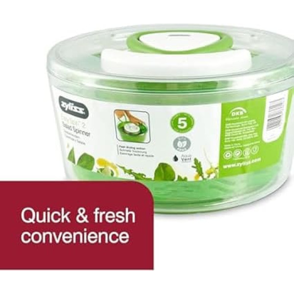 Fast drying with our Aquavent drying basket technology New and improved brand classic with ergonomic handle design for effortless pulling Fast braking system with quick brake function to fluff up salad at the touch of a button Serve in the bowl with our stylish bowl and non-slip base that can be used directly for serving Large capacity for 4-6 servings of salad › See more product details; Product description Zyliss E940012U Easy Spin Salad Spinner ABS Green; Product description Zyliss E940012U Easy Spin Salad Spinner ABS Green; Zyliss E940012U Easy Spin Salad Spinner ABS Green
