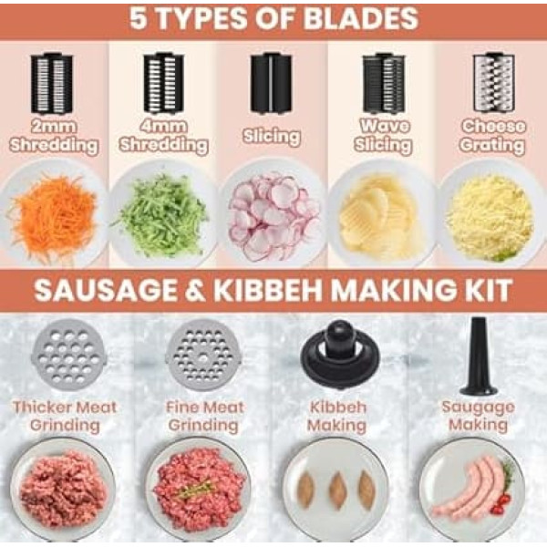 Parmedu Electric Meat Grinder & Vegetable Slicer & Cheese Grater 2-in-1 Automatic Multi Chopper Kitchen Grater Mandolin Parmesan Grater Salad Machine Sausage Machine Sausage Filler Kibbeh Maker