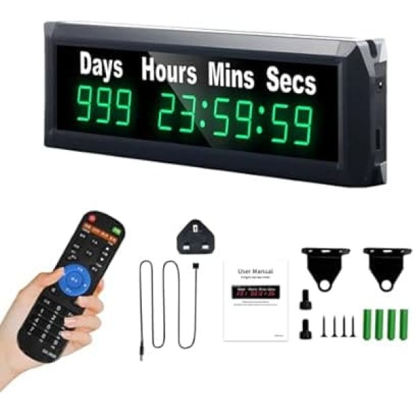 Multifunctional Countdown Timer It can count down 12/24 hours, count down days, count down days, up to 999 days, set 23 hours, 59 minutes and 59 seconds. EASY SETUP Set up your digital timer in just 1 minute with the included wireless remote. Automatic calculation: enter start/end times and the timer clock will automatically set the time with a buzzer reminder. Clear display: LED numbers are large and bright, visible day or night on tables or walls. Event reminder: Perfect for kitchen, retirement, baby, meeting, Christmas, birthday, cruise, graduation, test or semester countdowns. › See more product details; Product description Ousmile Kitchen Timer, 999 Days Digital Timer, Countdown Clock with Remote Control, 12/24 Hours Real Time, Large Display, Countdown Calendar for Retirement/Pregnancy/Birthday (Green); Product description Ousmile Kitchen Timer, 999 Days Digital Timer, Countdown Clock with Remote Control, 12/24 Hours Real Time, Large Display, Countdown Calendar for Retirement/Pregnancy/Birthday (Green); Ousmile Kitchen Timer, 999 Days Digital Timer, Countdown Clock with Remote Control, 12/24 Hours Real Time, Large Display, Countdown Calendar for Retirement/Pregnancy/Birthday (Green)