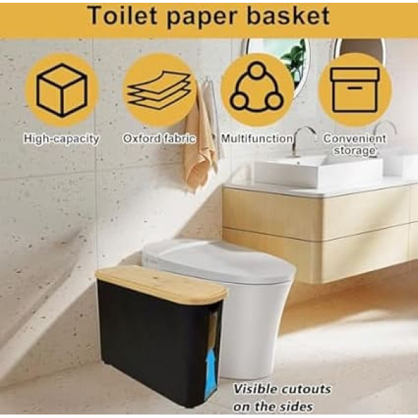 Extra large capacity: our toilet paper storage basket with lid offers plenty of space with a capacity of 23 litres and the dimensions of the storage basket of 45 cm x 15 cm x 35 cm. 12 rolls of toilet paper can be easily stored and can be perfectly organised and stored. Say goodbye to the mess and enjoy an organised bathroom Foldable design: foldable paper storage basket, easy to fold, lightweight and easy to carry. The folded waste paper basket is compact and can be easily placed in drawers and cupboards without taking up too much space. The toilet paper organiser is an excellent way to hide toilet paper and keep it ready at the same time Mobile and comfortable: the bamboo toilet paper holder is equipped with side handles on both sides, so you can transport it easily and safely without risking wounds or injuries. The transparent window on the side of toilet paper storage standing allows you to keep an eye on the supply of toilet paper and refill it in time for easy access Easy to install: no tools required. Assemble our toilet paper basket holder quickly and effortlessly by following the assembly steps indicated in the packaging. Robust and stable, the storage basket can stand upright in different places, e.g. in the toilet, in the bathroom or under the sink Versatile: the standing toilet paper storage is not only suitable for storing paper towels, but also for toys, towels, dirty clothes and other bathroom utensils. Large capacity toilet paper storage can be placed in different places, such as in the bathroom, next to the toilet and under the sink. It fits into narrow bathrooms and makes optimal use of space › See more product details