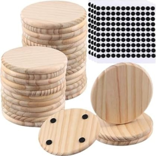 NATURAL MATERIAL - Round blank wood coasters are made of pine wood, which is not prone to warping, cracking or deformation, along with strong bearing capacity STABILITY - The wooden coasters protect your table surface from damage and stains caused by coffee and tea. The non-slip sticker prevents wobbling or shifting, provides stability Freedom design: these unfinished wooden coasters are undecorated, so you can draw, paint or carve on the blank surface to create a personalized coaster MULTIPURPOSE - Round wooden coasters can not only be used as a cup mat, but also can be applied for various DIY projects, painting, carving, decorative displays, wood burning, etc PACKAGE INCLUDED Each wooden coaster measures 10cm in diameter and 0.9cm thick. You will receive 30 pieces coasters and come with non-slip stickers, enough for daily use and replacement › See more product details; Product description Product Features: ♦ Each unfinished wooden coaster is hand polished for a smooth, burr-free surface and comfortable feel. ♦ The round blank wooden coasters are made of high quality pine wood, which is hard enough not easy to warp or break. About details: Material: pine wood. Size: 10 x 10 x 0.9 cm. About the content: Quantity:30 x Wooden Round Coasters; Product description Product Features: ♦ Each unfinished wooden coaster is hand polished for a smooth, burr-free surface and comfortable feel. ♦ The round blank wooden coasters are made of high quality pine wood, which is hard enough not easy to warp or break. About details: Material: pine wood. Size: 10 x 10 x 0.9 cm. About the content: Quantity:30 x Wooden Round Coasters; Product Features: ♦ Each unfinished wooden coaster is hand polished for a smooth, burr-free surface and comfortable feel. ♦ The round blank wooden coasters are made of high quality pine wood, which is hard enough not easy to warp or break. About details: Material: pine wood. Size: 10 x 10 x 0.9 cm. About the content: Quantity:30 x Wooden Round Coasters