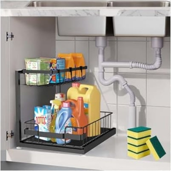 Sliding storage drawer: Our organisers and storage boxes under the sink are designed with a unique design that allows lower baskets to be pulled out so you can access the items stored under the sink. SPACE SAVING Our 2 tier sink organizer and storage provides a storage solution to maximize space and fits in any cabinet or sink, even with pipes and garbage disposals. STURDY CONSTRUCTION This organizer and under sink storage are made of stainless steel with protective coating to prevent rust in wet and watery places. Can help you store your items better and look clean and tidy. Easy to Install & Clean The pull out closet organizer can be installed without tools. Drainage design prevents water accumulation. Also effortless to clean, simply wipe the surface with a damp cloth to clean it and then keep it dry. ALL METAL FRAME Made of high quality metal material, the organizer and storage under the sink has a higher bearing capacity. Its pull-out drawer makes it more convenient and faster to access items on the lower levels. › See more product details; Product description Under Sink Organizer 2 Tier Organizer and Storage Pull Out Metal Cabinet Organizer for Kitchen Bathroom Pantry Closet Organization Shelf We create neat and organized space for people through practical and practical products. We hope you will find products that make your life much more convenient and stress-free. Technical data: Package include:1pc Color: Black Size: as shown in the picture. Material: Metal The L-shaped 2 tier design provides a storage solution to maximize space and fits in any cabinet or sink, even with pipes and garbage disposals. We understand that life can get hectic, whether it's juggling, family, hobbies or all of the above. That's why we have developed a range of functional organizers and storage solutions to help our customers regain control of their space and time. We believe that organization is the key to a fulfilling and productive life. Multipurpose organizers are very useful to maximize space and keep things tidy in different areas of the house, such as laundry room, kitchen, home office, closet. The possibilities are endless. With a little creativity and ingenuity, you will find all sorts of ways to use an organizer like this to keep your home neat and tidy.; Product description Under Sink Organizer 2 Tier Organizer and Storage Pull Out Metal Cabinet Organizer for Kitchen Bathroom Pantry Closet Organization Shelf We create neat and organized space for people through practical and practical products. We hope you will find products that make your life much more convenient and stress-free. Technical data: Package include:1pc Color: Black Size: as shown in the picture. Material: Metal The L-shaped 2 tier design provides a storage solution to maximize space and fits in any cabinet or sink, even with pipes and garbage disposals. We understand that life can get hectic, whether it's juggling, family, hobbies or all of the above. That's why we have developed a range of functional organizers and storage solutions to help our customers regain control of their space and time. We believe that organization is the key to a fulfilling and productive life. Multipurpose organizers are very useful to maximize space and keep things tidy in different areas of the house, such as laundry room, kitchen, home office, closet. The possibilities are endless. With a little creativity and ingenuity, you will find all sorts of ways to use an organizer like this to keep your home neat and tidy.; Under Sink Organizer 2 Tier Organizer and Storage Pull Out Metal Cabinet Organizer for Kitchen Bathroom Pantry Closet Organization Shelf We create neat and organized space for people through practical and practical products. We hope you will find products that make your life much more convenient and stress-free. Technical data: Package include:1pc Color: Black Size: as shown in the picture. Material: Metal The L-shaped 2 tier design provides a storage solution to maximize space and fits in any cabinet or sink, even with pipes and garbage disposals. We understand that life can get hectic, whether it's juggling, family, hobbies or all of the above. That's why we have developed a range of functional organizers and storage solutions to help our customers regain control of their space and time. We believe that organization is the key to a fulfilling and productive life. Multipurpose organizers are very useful to maximize space and keep things tidy in different areas of the house, such as laundry room, kitchen, home office, closet. The possibilities are endless. With a little creativity and ingenuity, you will find all sorts of ways to use an organizer like this to keep your home neat and tidy.