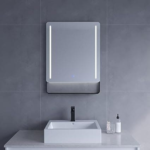 Bathroom Mirror with Lighting and Shelf in Black 60 x 80 cm Bathroom Mirror with High-Quality Aluminium Frame Bathroom Mirror with LED Light Mirror Heating Touch Switch Dimmable for Wall Switch