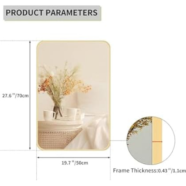 Premium quality: Elevate the style of your bathroom with this rectangular mirror with gold frame, crafted with great attention to detail. Versatile design: mount this mirror horizontally or vertically to complement your space, making it a versatile addition to bathrooms, dressing rooms and living areas. Simple and modern: With a chic golden frame, this wall-mounted cosmetic mirror radiates contemporary elegance and sophistication. Durable Construction: Made of high-quality materials, this mirror ensures long-lasting use and retains its flawless appearance over time. 【EFFORTLESS INSTALLATION】Designed for hassle-free installation, this mirror comes with all necessary hardware, allowing a seamless addition to your desired location. › See more product details; Product description Elevate the style of your bathroom with this elegant gold framed mirror. Measuring 50 x 70 cm, this large rectangular mirror is perfect for mounting on the wall, either horizontally or vertically. Its sleek design with a gold frame adds a touch of sophistication to any bathroom, dressing room or living area. Made from high quality materials, this mirror offers a clear and undistorted reflection, making it ideal for maintaining or just admiring your space. Hang it over your dressing table or in a strategic place to create a sense of depth and openness. With its versatile size and timeless appeal, this mirror blends effortlessly with various interior styles, from modern to traditional. Enhance the ambience of your home and elevate your everyday life with this stylish and functional wall mirror.; Product description Elevate the style of your bathroom with this elegant gold framed mirror. Measuring 50 x 70 cm, this large rectangular mirror is perfect for mounting on the wall, either horizontally or vertically. Its sleek design with a gold frame adds a touch of sophistication to any bathroom, dressing room or living area. Made from high quality materials, this mirror offers a clear and undistorted reflection, making it ideal for maintaining or just admiring your space. Hang it over your dressing table or in a strategic place to create a sense of depth and openness. With its versatile size and timeless appeal, this mirror blends effortlessly with various interior styles, from modern to traditional. Enhance the ambience of your home and elevate your everyday life with this stylish and functional wall mirror.; Elevate the style of your bathroom with this elegant gold framed mirror. Measuring 50 x 70 cm, this large rectangular mirror is perfect for mounting on the wall, either horizontally or vertically. Its sleek design with a gold frame adds a touch of sophistication to any bathroom, dressing room or living area. Made from high quality materials, this mirror offers a clear and undistorted reflection, making it ideal for maintaining or just admiring your space. Hang it over your dressing table or in a strategic place to create a sense of depth and openness. With its versatile size and timeless appeal, this mirror blends effortlessly with various interior styles, from modern to traditional. Enhance the ambience of your home and elevate your everyday life with this stylish and functional wall mirror.
