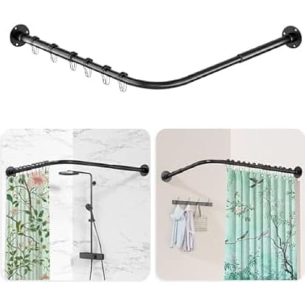 4 mounting methods: the shower curtain rail L shape can be mounted in 4 different sizes: square: 60-90 cm x 60-90 cm / 100-134 cm x 100-134 cm. Rectangle: 60-90cm x 100-134cm / 60-90cm x 140-175cm Note: The L shape shower rail cannot be extended to 175 cm on both sides at the same time Stable base, no sagging: whether the L shape shower rail is stable and whether it sags depends decisively on the base. Conventional plastic bases break easily, deform, age and are not reusable. Our base is made of high-quality, stainless steel in one piece - deformation-free, ageing resistant and guaranteed without sagging No cutting required, adjustable size for each corner: matt black shower curtain rail corner. With telescopic tubes, the length can be adjusted without cutting - ideal for irregular and standardised bathrooms. This pull-out design meets the requirements of most bathtub/bathroom High load capacity: the rust-proof stainless steel shower curtain rail L shape (diameter 25.4 mm / 0.9 mm thickness) is rust-proof, easy to clean and lasts for years. Load capacity up to 16 kg. Includes adjustable ceiling support (150 cm) for extra stability Suitable for most home decor: this matte black shower curtain rail L shape is made of high-quality, powder-coated steel. It is not only a practical shower curtain rod in the bathroom, but also an exquisite home decoration Multifunctional use: shower curtain holder ideal for 90° angles in: bathrooms, kitchens, bedrooms, balconies, apartments, wardrobes, use as a privacy screen with curtains or as sun protection on windows › See more product details