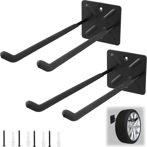 DURABLE DESIGN These hooks are made of durable steel with rust proof coating and can hold up to 44 lbs. Design: features an anti-slip handle coating for more safety and stability and ensures that your items stay securely in place. MAXIMIZE STORAGE SPACE Includes two universal hooks that help you use space efficiently and keep your area tidy. Versatile Use Ideal for hanging tools, folding chairs, tires, ladders and more, making it perfect for garages, cupboards and outdoor areas. EASY INSTALLATION Comes with all mounting screws, for hassle free installation with just drill and screwdriver. › See more product details