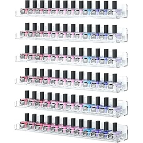 DAWOO Transparent Multi-Purpose Acrylic Shelves - Can be Used as Nail Polish Display Stand, Essential Oil Storage Rack (Transparent, 5.5 x 40 cm, Pack of 6)
