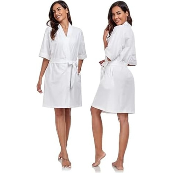 COLORFULLEAF 100% Cotton Dressing Gown Women's Bathrobes Lightweight Short Sauna Kimono Soft Women Sleepwear Short Sleeve, White