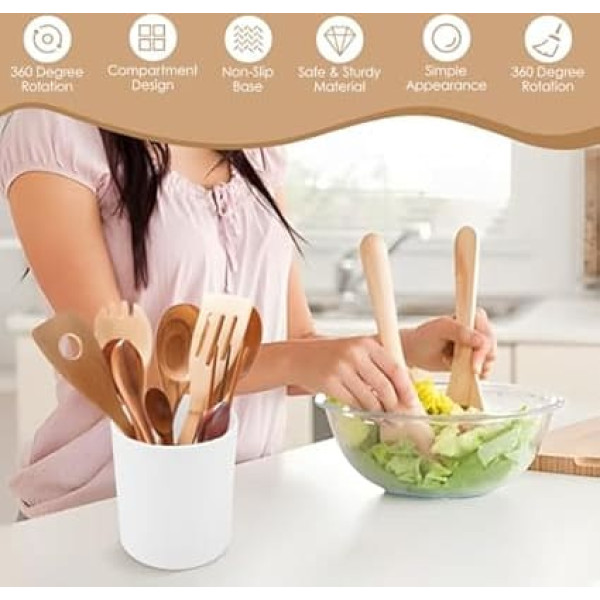 Save space: the kitchen utensil rack is equipped with compartments, classified and neatly stored with appropriate division. Eliminate clutter and store all your everyday cooking utensils like spoons, spatulas, pizza cutters and knives without the need for a utensil drawer organizer. Easily use your most important tools at the right time and place. 360° Rotatable: Our utensil organizer features a 360° rotating base as an additional feature to give you easy access to much-needed kitchen utensils. It rotates easily and smoothly with just your fingertips! Non-slip bottom: our utensil organiser is made of food-safe, healthy PP material, which is durable and has a non-slip base to keep your kitchen utensils in place. With its simple look, it is perfect for storing chopsticks and kitchen utensils in the home kitchen. Practical kitchen organisation: instead of looking for gaps in the drawer, you can store your kitchen utensils in this practical utensil holder. It's time to reduce pressure on your crowded cookware drawer and countertop clutter! Perfect for decorating: there is no doubt that this utensil container helps you stay organised and efficient in the kitchen. Best of all, it's a subtle accent that really takes your decor to the next level. › See more product details