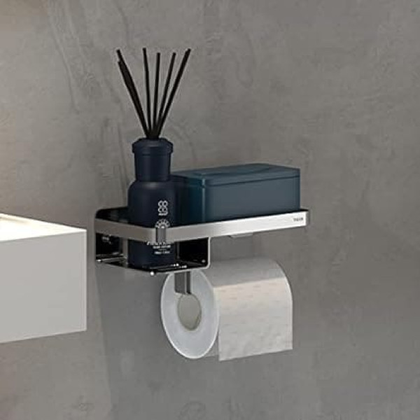 Tiger Caddy Toilet Paper Holder with Practical Shelf, Stainless Steel Toilet Roll Holder with Storage Surface for Smartphone or Box of Wet Toilet Paper, Colour: Chrome